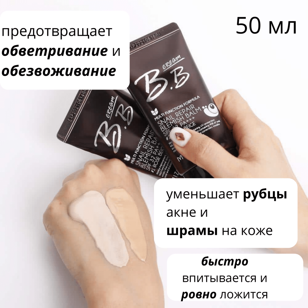 Snail Repair Blemish Balm ВВ крем от Mizon, содержащий 42% улиточного экстракта, оказывает эффект микропилинга, препятствует обезвоживанию кожи и появлению ранних морщин, помогает побороть угревые высыпания, уменьшает рубцы акне и шрамы на коже, сужает растяжки и расширенные поры.