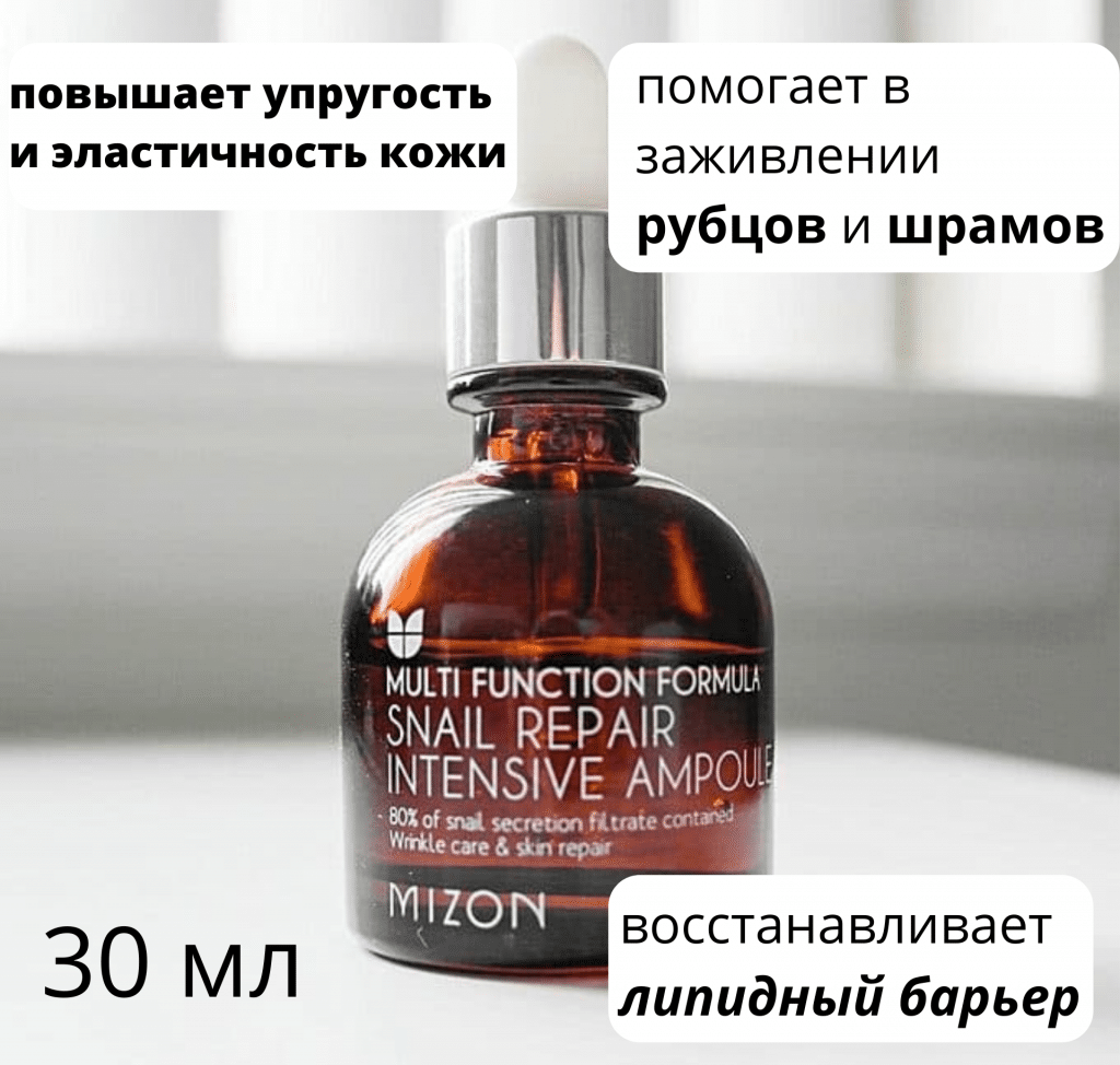 Snail Repair Intensive Ampoule Восстанавливающая сыворотка Snail Repair Intensive Ampoule содержит в своем составе 80% экстракта слизи улитки, а также эпидермальный фактор роста (EGF). Улиточный секрет обладает мощным эффектом восстановления клеток кожи. Данные компоненты в составе средства способствуют повышению упругости и эластичности кожи, стимулируют выработку её собственного коллагена и эластина. Сыворотка Snail Repair Intensive Ampoule эффективно разглаживает мелкие и средние морщины, делает малозаметными послеоперационные шрамы и рубцы успокаивает раздражение, снимает воспаления, обладает легким лифтинг-эффектом.