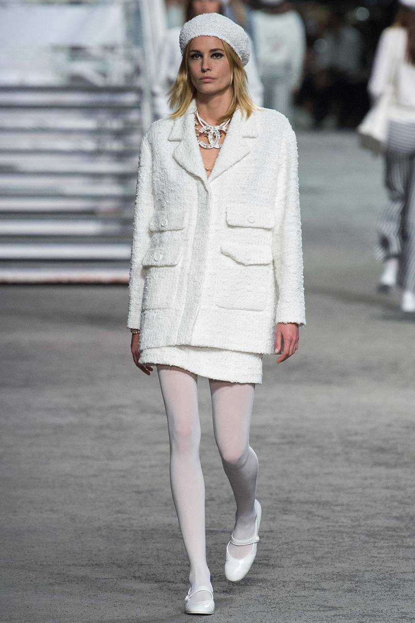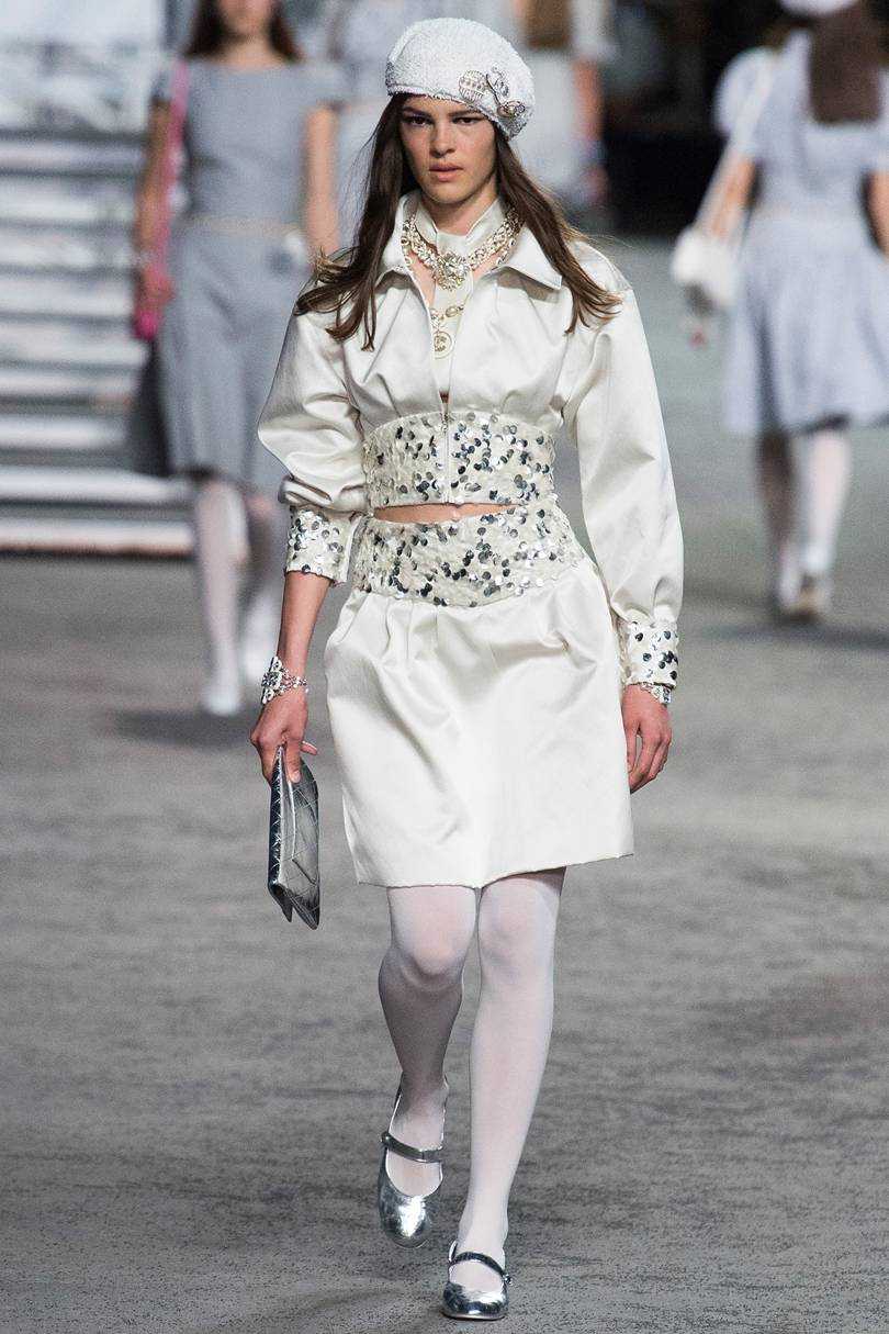 - Модель, в которой в качестве верхней части дизайнерами использовался топ, идущий в комплекте с костюмом.