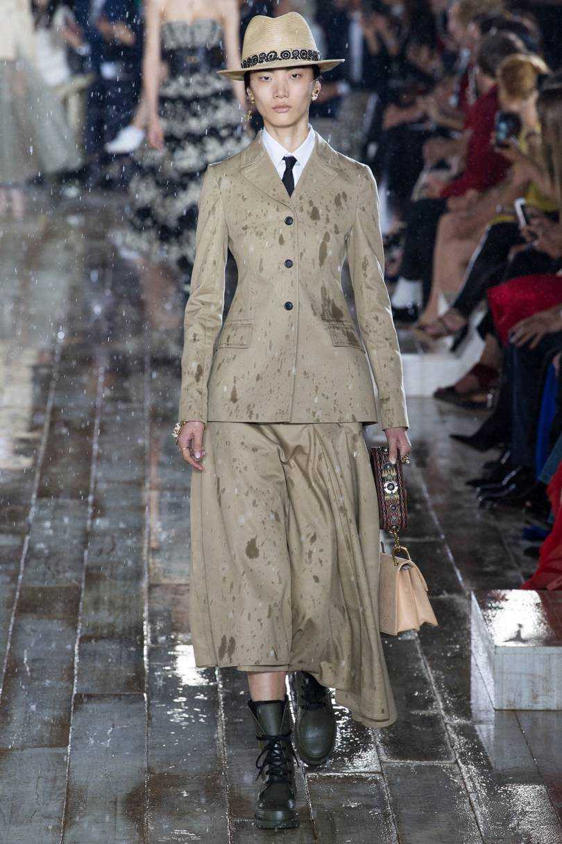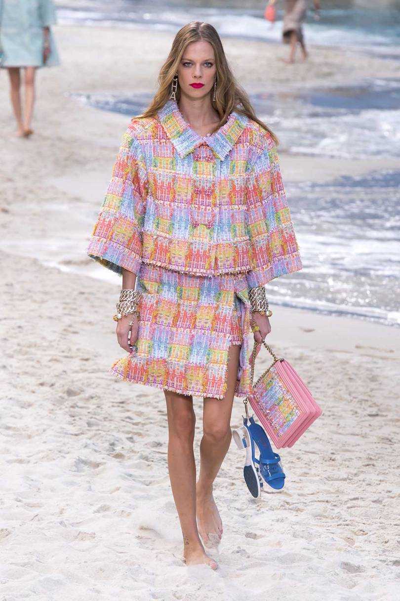 Часто встречаются на подиуме и модели с геометрическим принтом – клетка или полоска. Они могут отличаться размером, шириной и расцветкой элементов принта. Трендовая клетка может быть однотонной или сочетать в себе разные цвета.