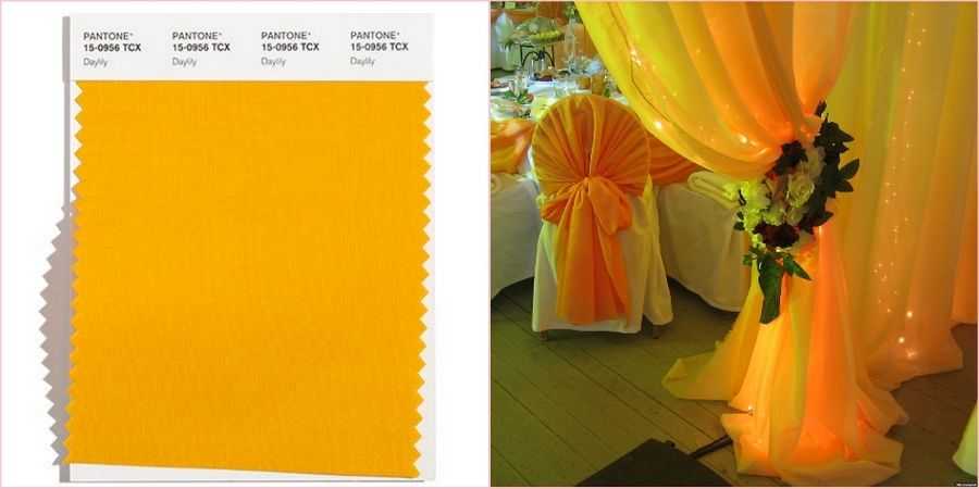 И снова лучезарный – «Illuminating», он же цвет нынешнего года, упомянутый ранее уже не раз. На свадебной церемонии ему найдется применение во всем – маникюре новобрачной, украшениях, обуви, сервировке стола, флористике, полиграфии, фотозоне.