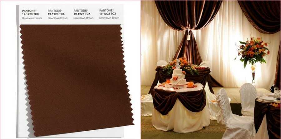 Еще один тон, который напоминает нам об осенней палитре – глубокий коричневый «Downtown Brown». Уместнее всего использовать его для оформления свадьбы в начале осени.