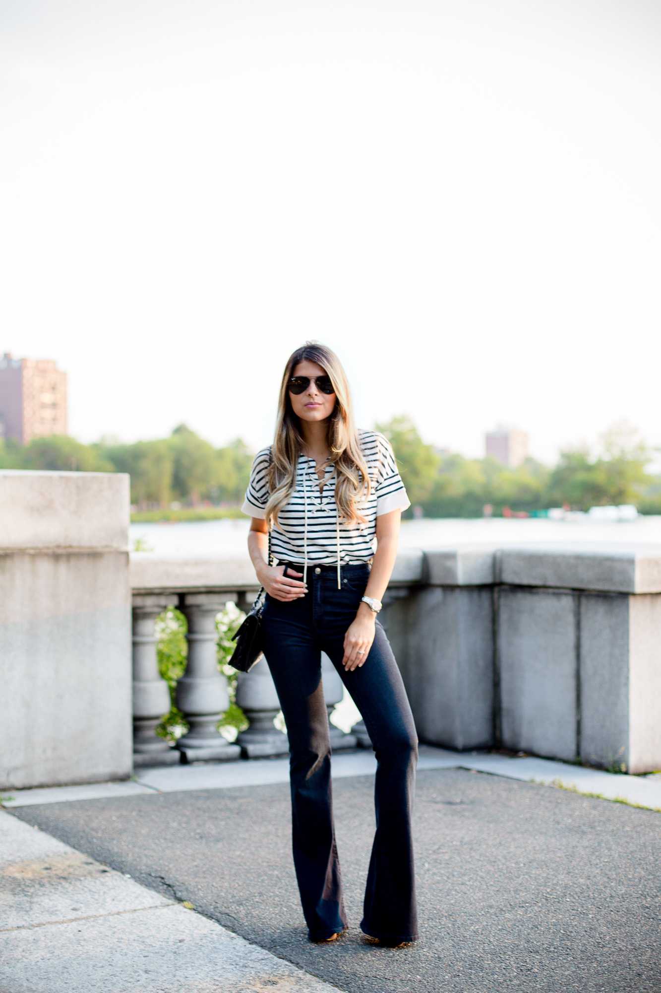 Черные джинсы клеш — с чем сочетать