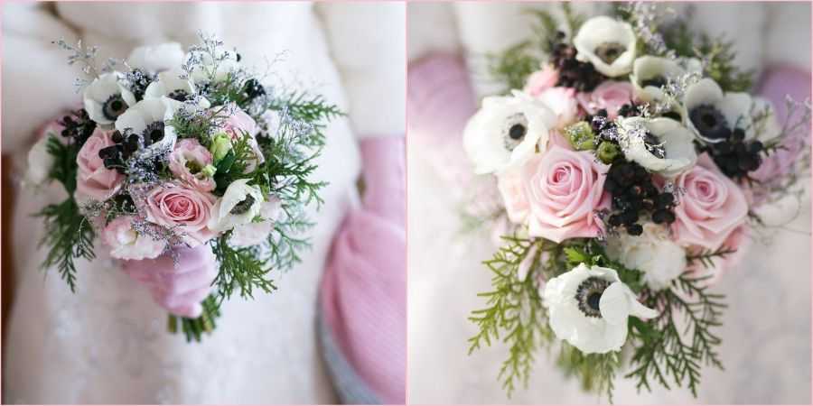 Их отличительной особенностью является темная серединка, которая привлекает к себе внимание. Прекрасным дополнением к анемонам будут ранункулюсы и розы