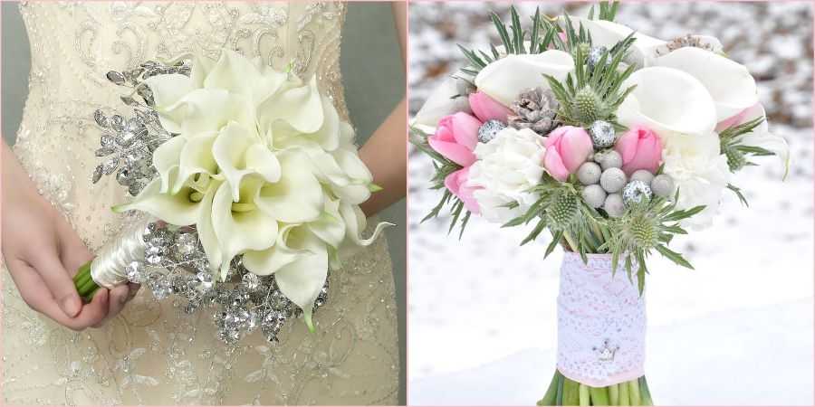 Каллы. Можно ли их использовать в свадебном букете — спорный вопрос. Из-за характерной формы цветы изначально считались мужскими. Символизируют восхищение жениха невестой, также помогают сохранить семейное счастье.