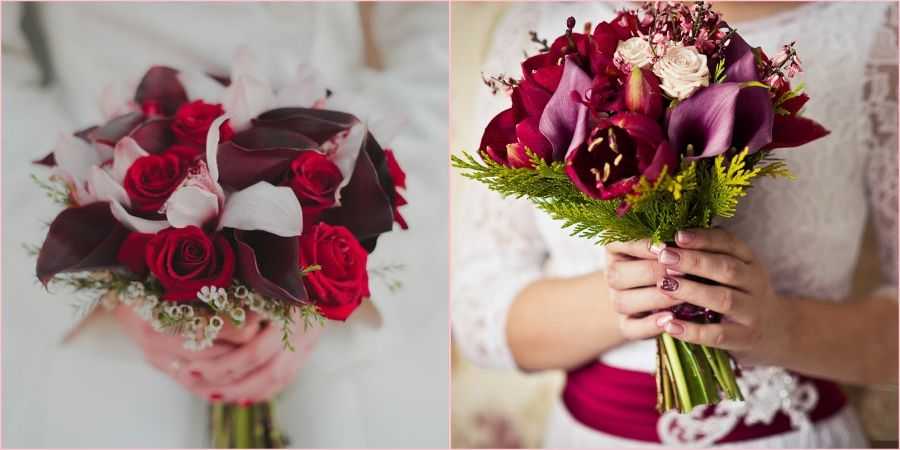 Темные букеты. Эффектно будут смотреться лучшие цветочные букеты с темными и насыщенными по оттенку цветками – от бордовых, винных, вишневых до оттенка марсала. Подобные темные цветочные композиции захватывают дух и смотрятся выразительно.