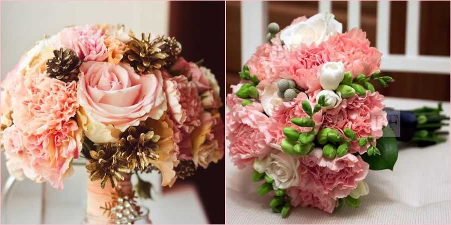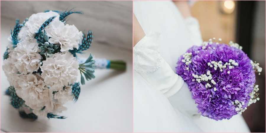 Эти растения стали использовать для свадебных композиций относительно недавно, но они уже успели привлечь внимание невест. Гвоздики с легкостью вынесут холодную минусовую температуру и сохранят свой красивый первозданный вид. Отлично сочетаются с розами, герберами и хризантемами