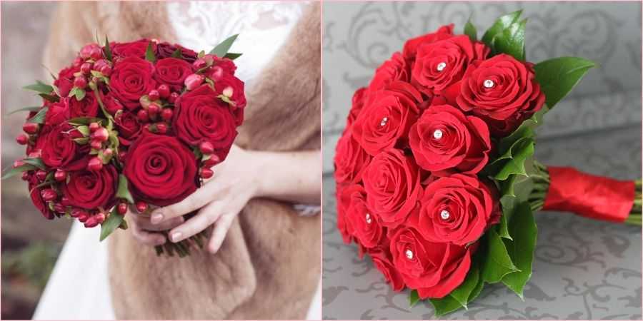 Для торжества в холодное время года лучше использовать розы поярче – красные, бордовые или оранжевые, так как они наиболее морозоустойчивы.