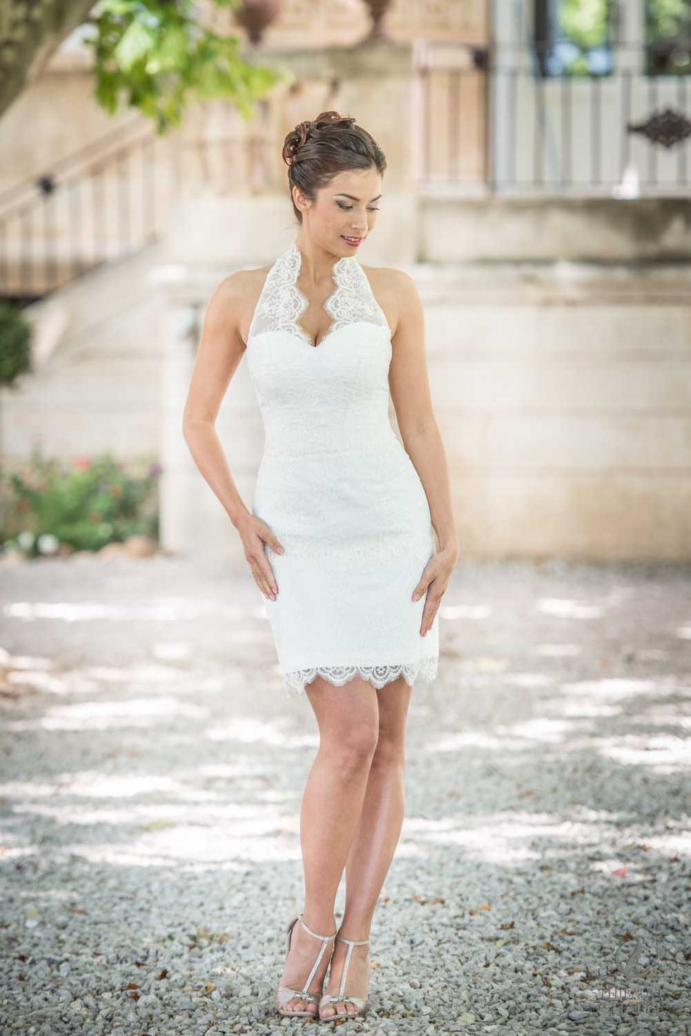 Также великолепно смотрятся укороченные модели на невысоких девушках. Ведь короткие кружевные свадебные платья визуально удлиняют силуэт.