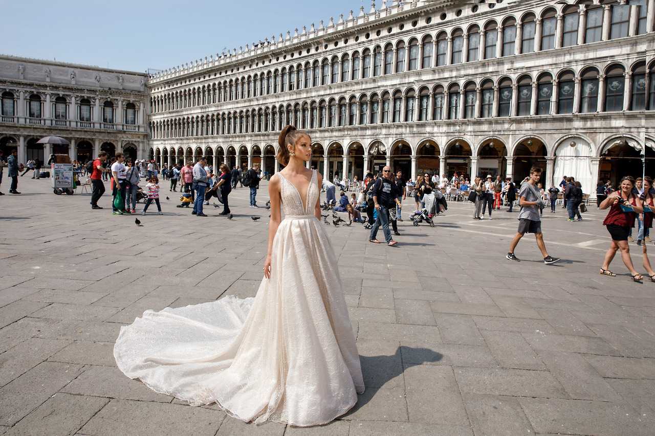 Свежая работа израильского кутюрье Julie Vino, который каждый сезон радует нас сказочными фотосессиями в самых живописных уголках мира. Если ранее был избран райский остров Santorini, то bridal-2018 была вдохновлена автору Венецией. Невеста Julie Vino это некая неуловимая сказочная жар-птица, украшенная тончайшими кружевами ручной работы с восточными орнаментами. Многие варианты имеют яркие акценты, напоминающие известные узоры венецианских масок. Изысканные выразительные узоры являются отличительной чертой этого мастера, и в новых работах их хватает сполна. Сказочные чудо-птицы словно слетели с райского сада в этот грешный мир – дизайнеру удалось создать целый ряд непохожих друг на друга, но одинаково завораживающих шедевров, сшитых с изумительным искусством и роскошью.