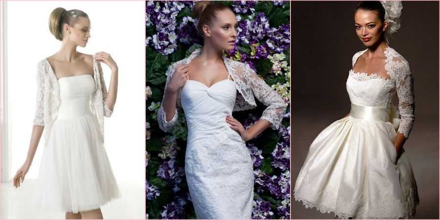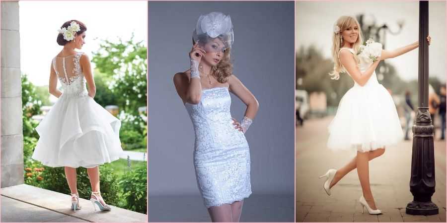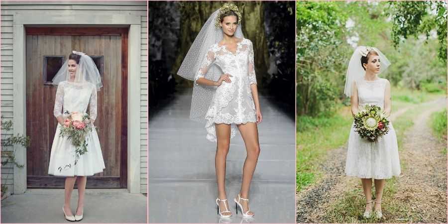 Наряды с юбкой, прикрывающей колени, подойдут большинству невест, желающих надеть в свадебный день короткое платье.