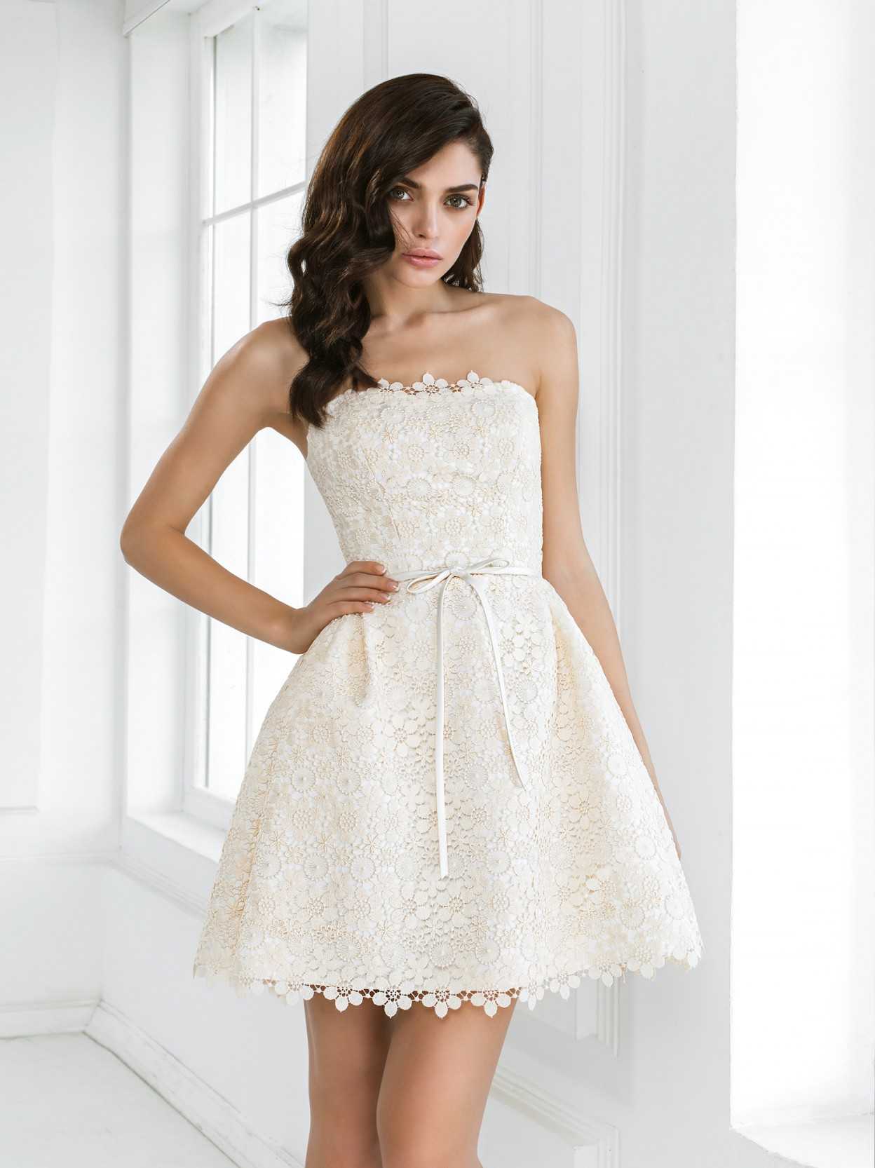 Нередко короткое платье выбирают и на второй день свадьбы, когда уже не нужен кринолин и корсет. Невесте тоже хочется получить удовольствие от праздника: вдоволь натанцеваться и поучаствовать в интересных конкурсах. Особенно если в день бракосочетания она была в классическом платье, в котором и ходить-то не очень удобно, не говоря уже об участии в развлекательной программе.
