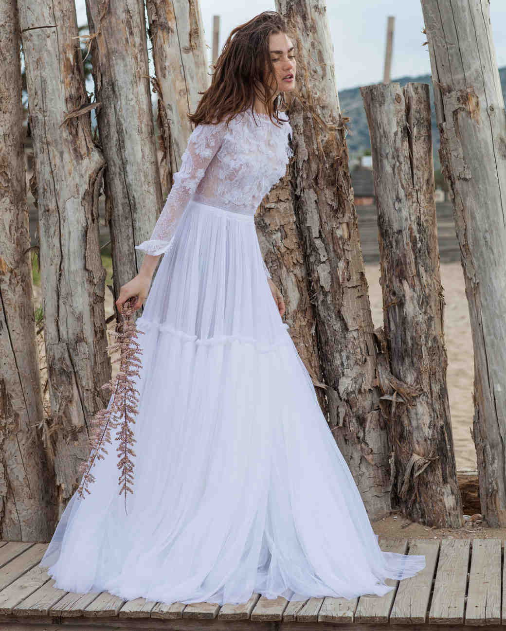 В 2018 году, свадебные эксперты вангуют популярность наряду, состоящего из креп-топа и длинной юбки. Такой вариант выглядит достаточно интересно. Кроме того, даже после свадьбы он не будет пылится в шкафу. Его можно будет комбинировать с другими вещами, получая интересные образы, которые отлично впишутся в повседневность.