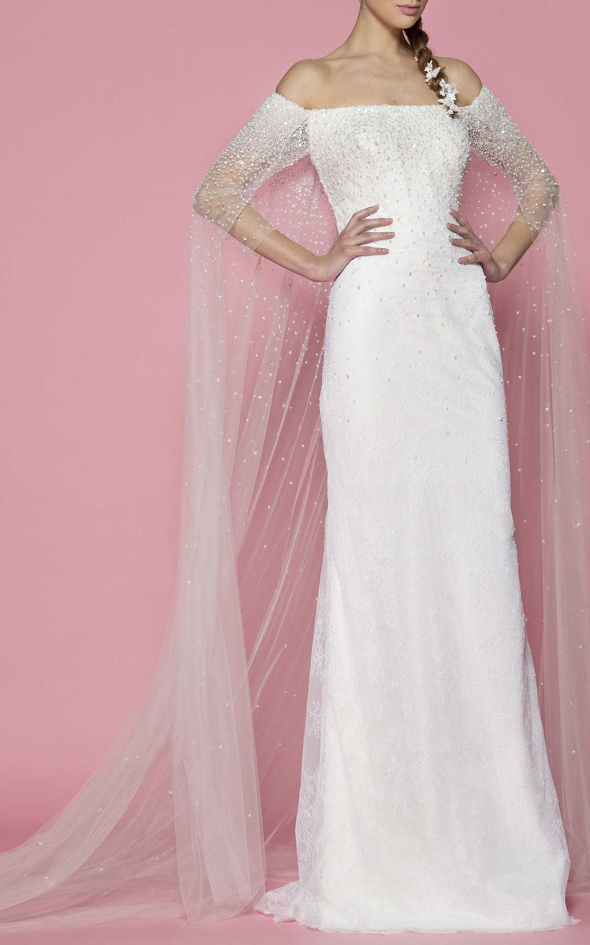 Ее MISS MIST окутана туманом, недосказанностью и призрачностью силуэтов. Вышивки и кружево ручной работы роскошны и неповторимы. Действительно, немного мистичные экземпляры, что и отражено в названии, которую можно перевести как «Мисс Мистика».