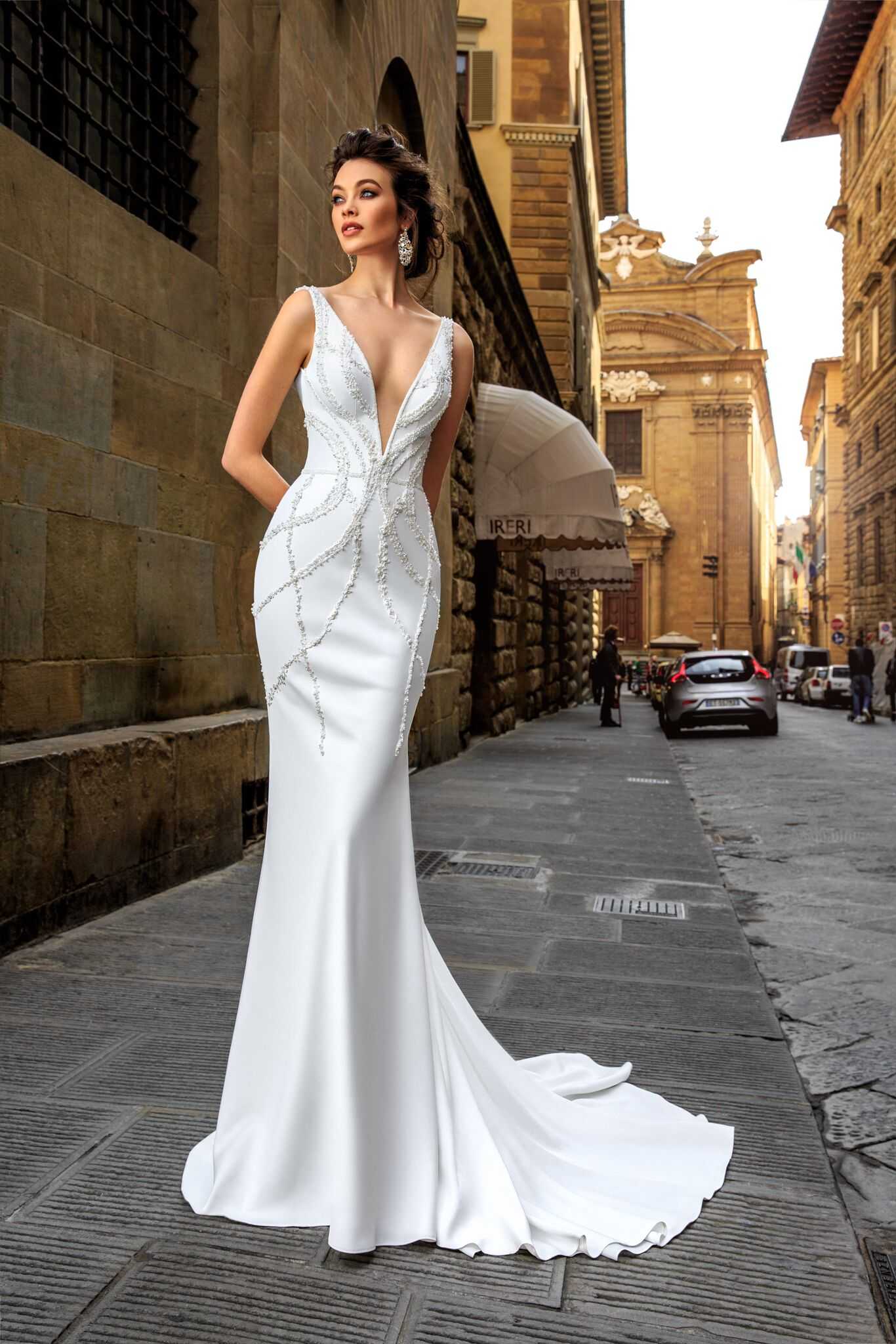 Вridal от Nicole Spose – настоящие шедевры. Бренд позиционирует себя как один из лучших итальянских домов, специализирующихся на подвенечных костюмах. В наступающем году она предложила более сдержанные луки, если сравнивать с ее изумительной фактурой текущего года. Новые формы более целомудренны, сдержаны, невинны. Нотки сакуры напоминают о предназначении как одежды, так и самой невесты – от слова «неизведанная», то есть непознанная, неискушенная.