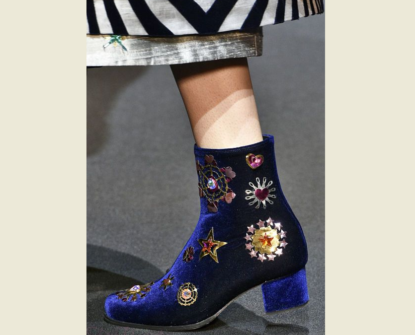 Снова звезды, блестки, камни и золотая вышивка. Если вы следите за модой, то такие полусапожки именно для вас.