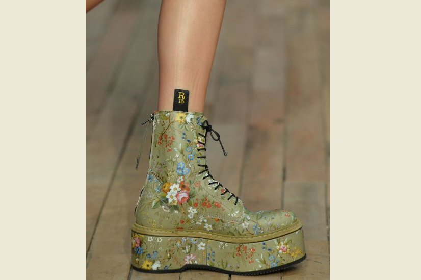 Еще одна интересная деталь на осенней и зимней обуви в новом сезоне — это цветочные принты. Идея давно витала в воздухе и наконец воплотилась буйством зеленой листвы и нежных бутонов на сапогах и ботильонах.