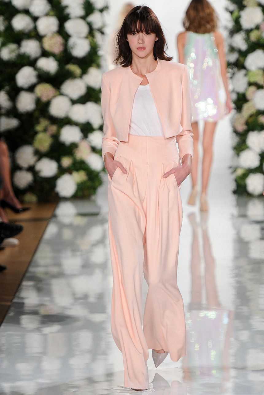 Безупречно использование цвета Ballet Slipper в брючном костюме, который придаст его обладательнице долю уверенности и оптимизма.