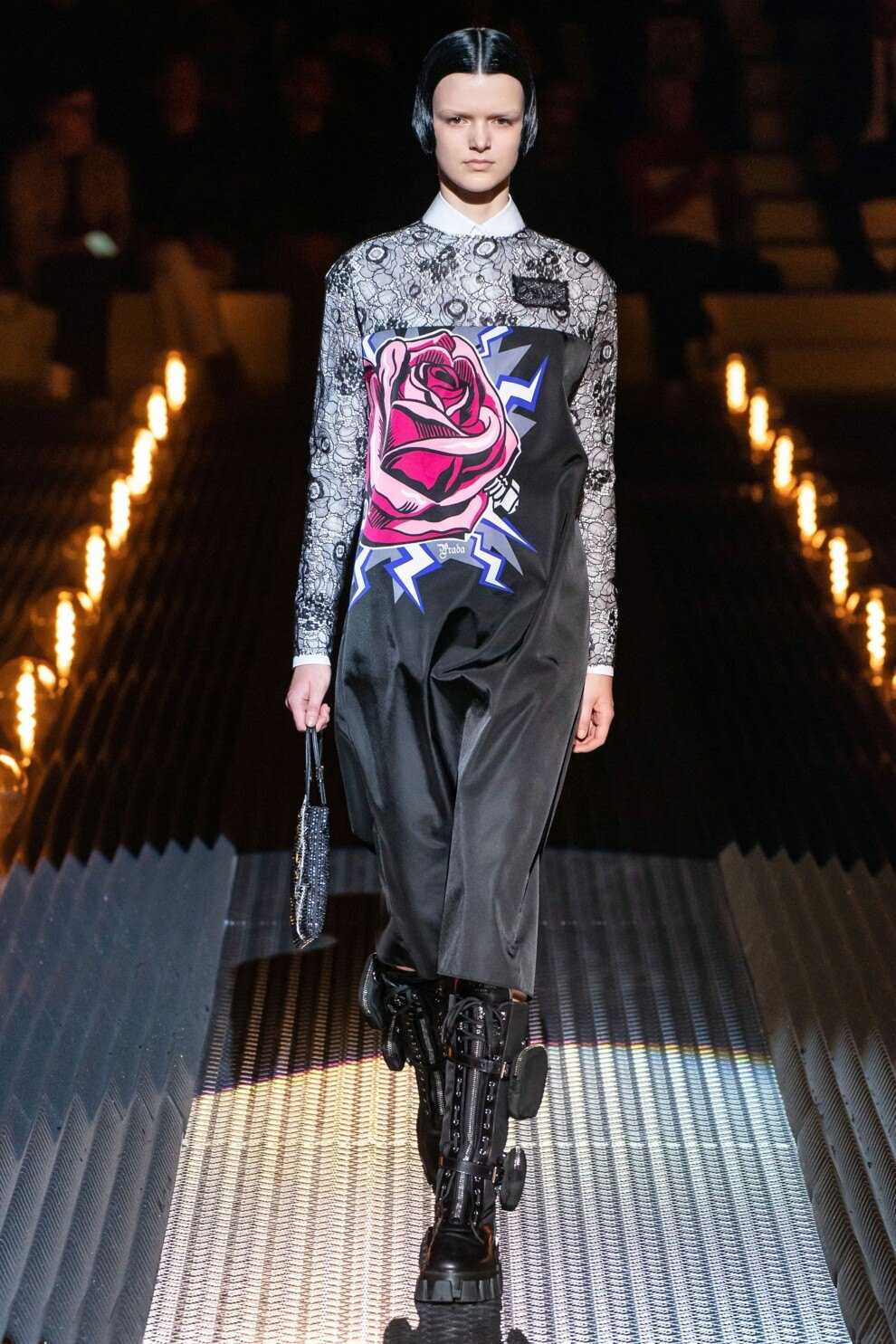 Роскошная смесь романтизма и готики удивляет своей привлекательностью в платьях с цветочными принтами на манящем темном фоне. Модными считаются варианты платьев с яркими и насыщенными принтами. Особенно удачные фасоны для такого выполнения — это платье-рубашка и платье-халат. Такие восхитительные модели платья можно встретить в коллекциях Prada, Dolce & Gabbana и Richard Quinn. Самые модные и роскошные платья для сезонов осень-зима считаются в черном выполнении с дополнением принта. Такие изделия смотрятся очень нарядно и красиво, они могут иметь совершенно любую длину.