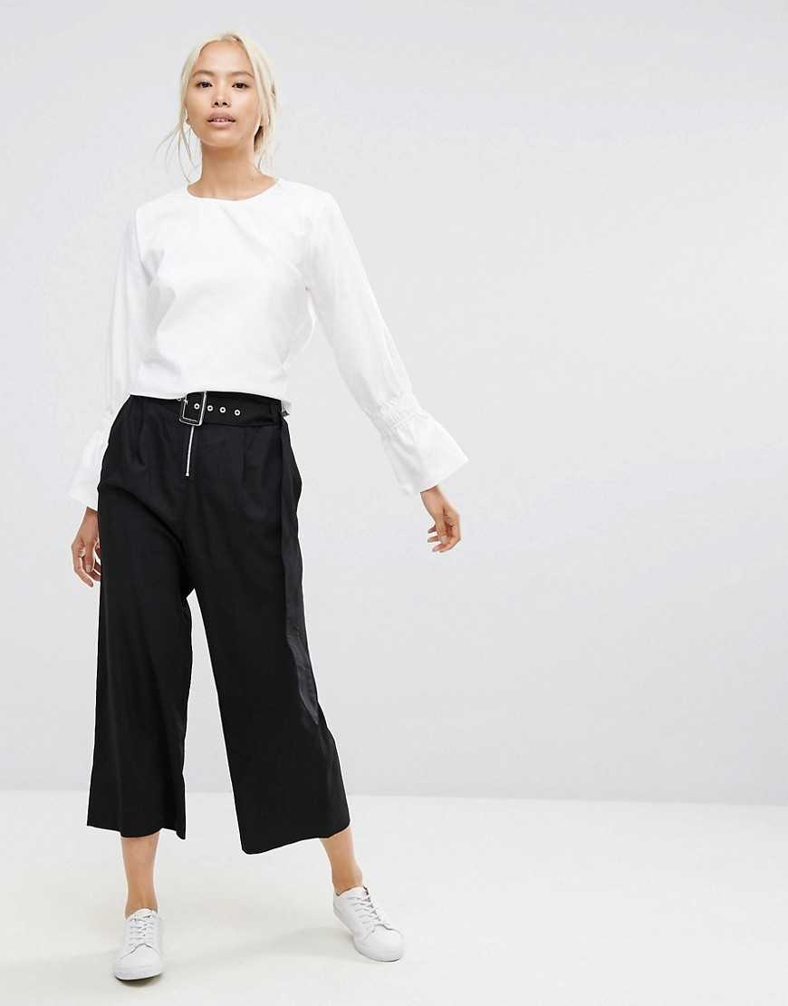 Неизменными лучшими брендами на протяжении многих сезонов являются широкие брюки. Каждый год стилисты совершенствуют модели, и на данном этапе за самыми популярными изделиями прочно закрепились кюлоты, удлиненные модели и клеш от бедра. Декоративным элементом каждому из этих фасонов служит тонкий элегантный ремешок, который подчеркнет достоинства вашей фигуры.