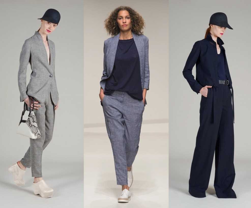 Популярные цвета для данной модели – черный, бордо, серый и брюки в полоску. В качестве декора в основном идет пуговица, на некоторых моделях можно увидеть тонкий цветной ремешок.