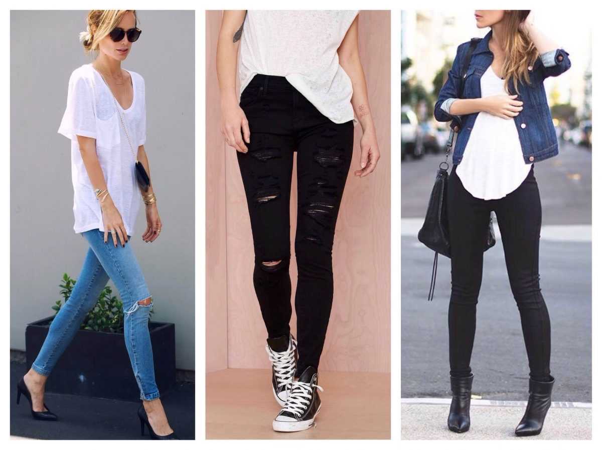 - Девушки со стройными ногами могут подчеркнуть свою идеальность форм с помощью обтягивающих скинни. Однако если ноги очень худощавые, такой фасон не подойдет, ведь он сильнее выделит их худобу.