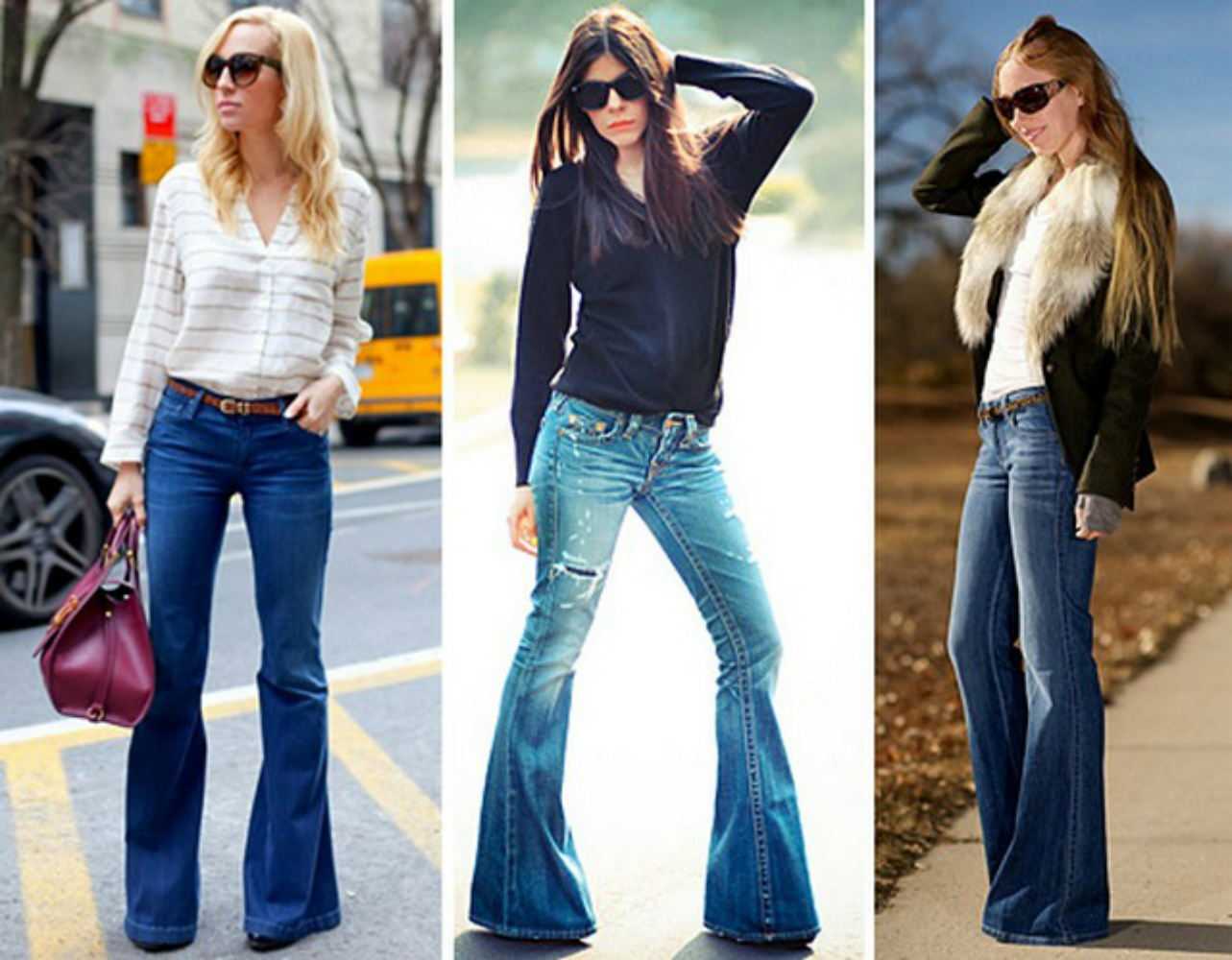Носить джинсы-клеш можно с футболками, водолазками, пончо, жакетами, рубашками, тельняшками, свитерами, пальто.