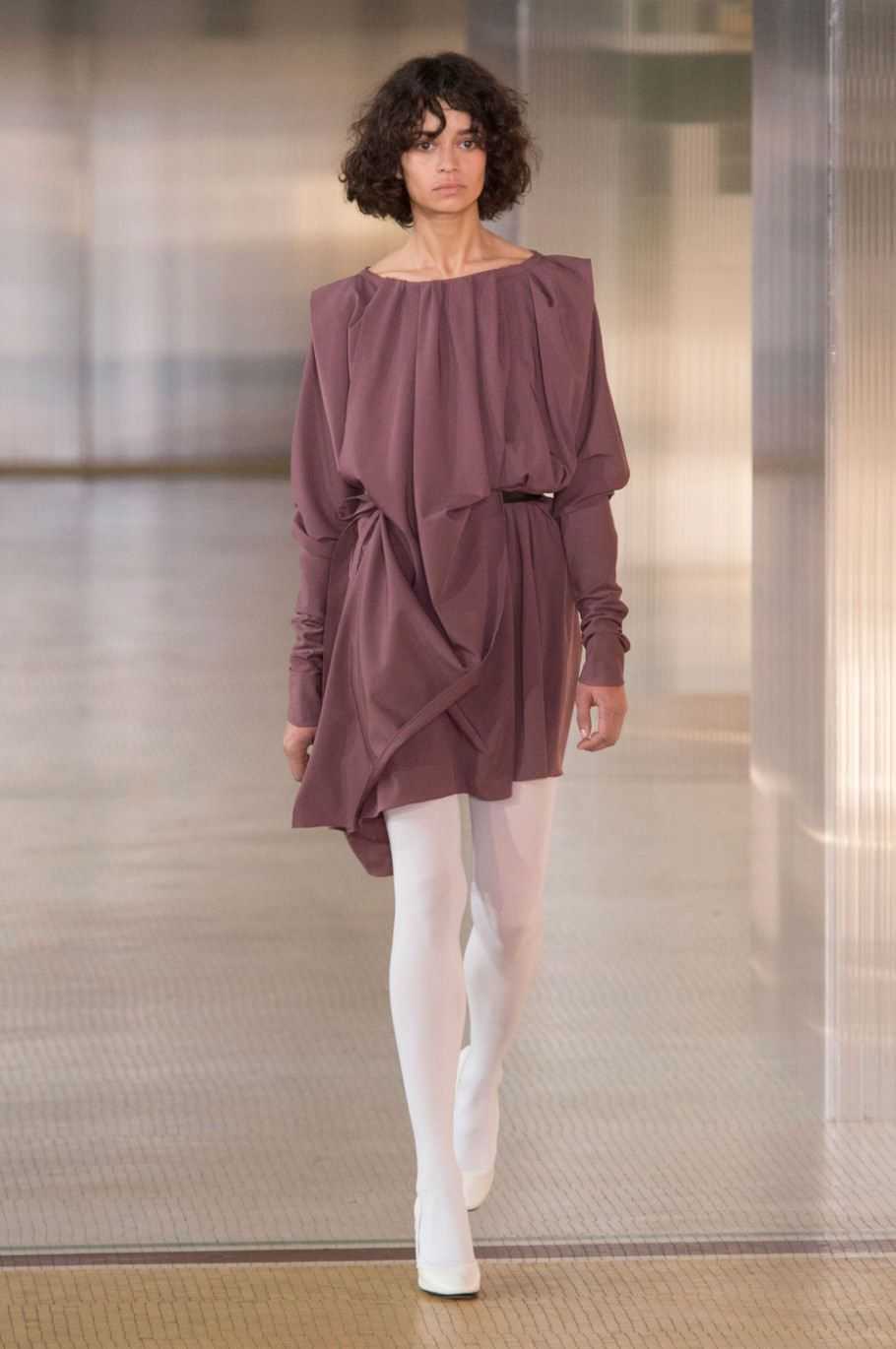 Фигурный край юбки можно было заметить, как на длинных платьях, где он смотрится особенно эффектно, так и на коротких моделях (Lemaire).