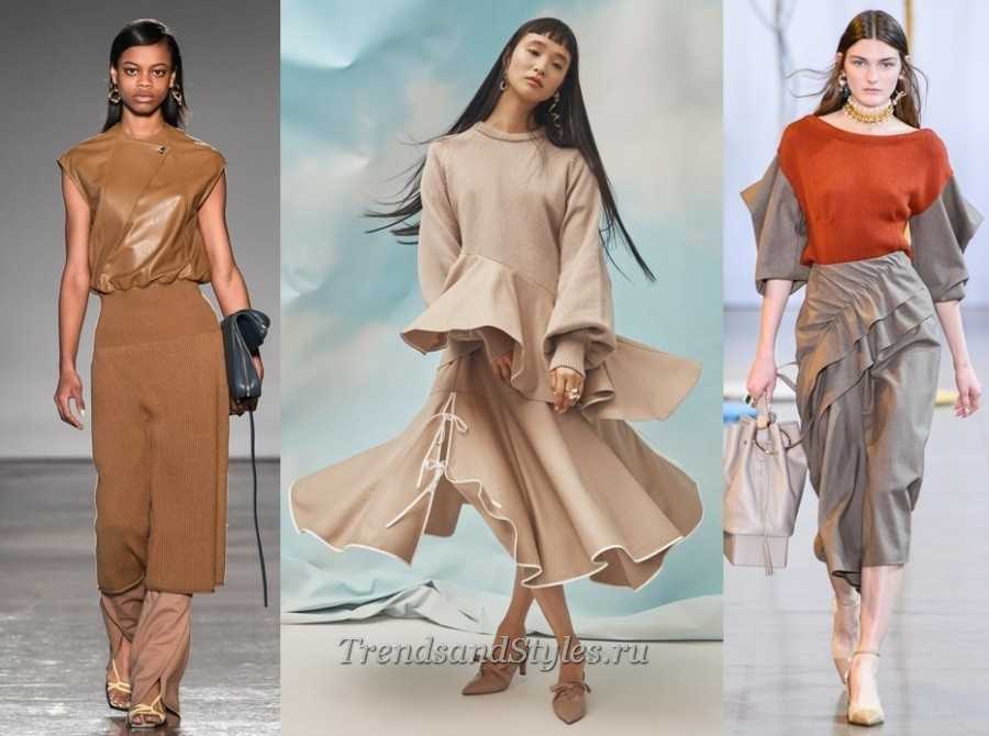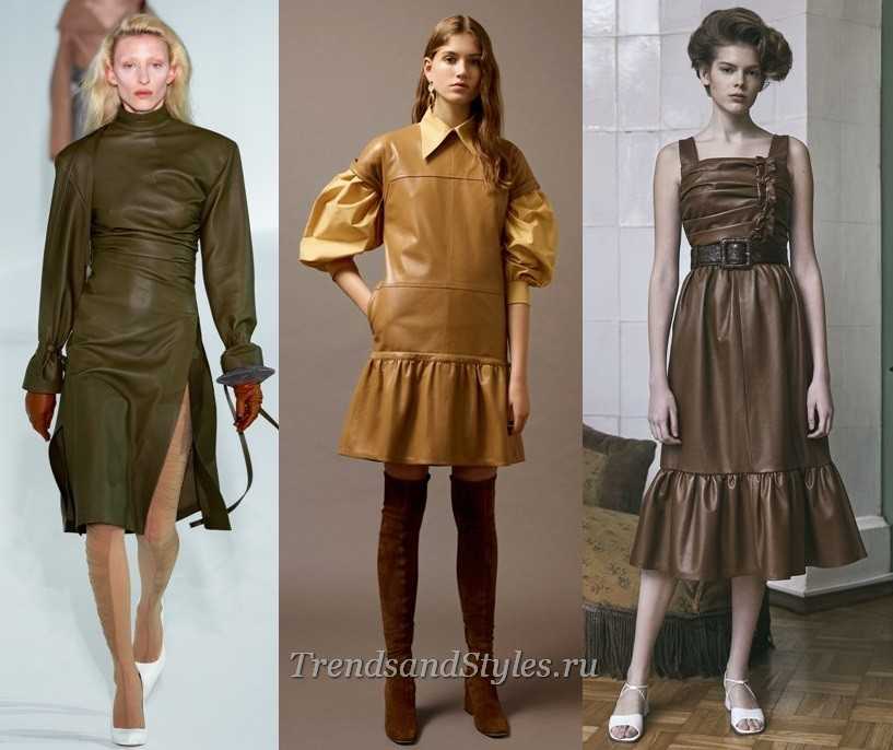 Немного агрессивная и всегда интригующая кожа в осеннем и зимнем сезоне может поразить своими спокойными и женственными тонами на модном платье. Оливковый, сахарный миндаль, чеддер, каменистая дорога — это только часть модных цветов 2019-2020, которые украсили дамские одежды.