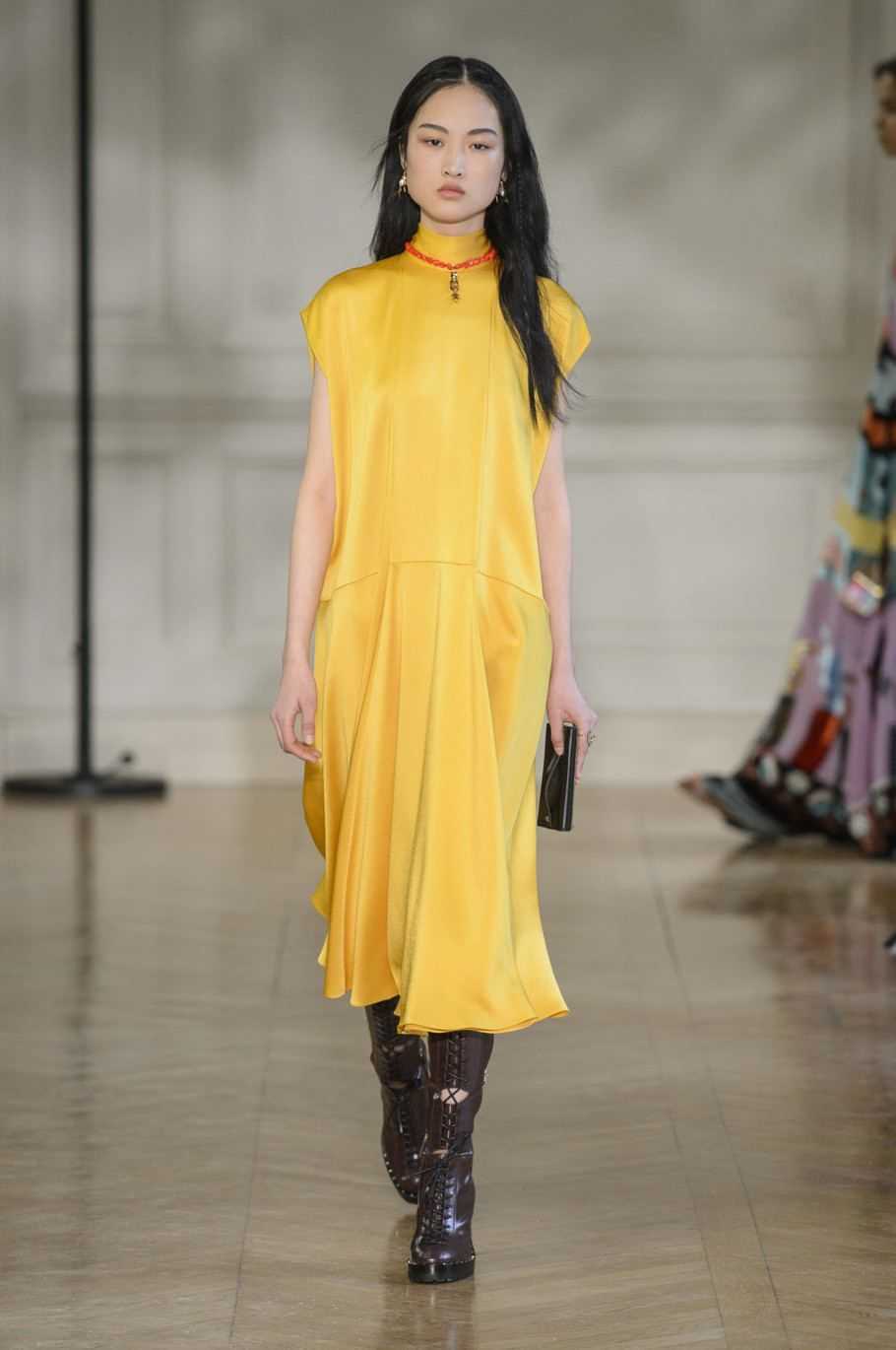 Одноцветные платья – один из главных трендов сезона (Roksanda). Если кажется, что total color – это скучно и однообразно, посмотрите на тенденцию с другой стороны. Однотонное платье – это очень универсальная вещь, используя различные стилистические аксессуары, можно создавать огромное количество образов.