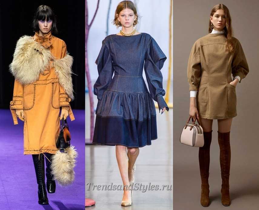 Джинсовые платья следуют модным тенденциям сезона осень-зима 2019-2020. В их числе есть модели с пышными рукавами, испоненные в популярных оттенках холодного периода года.
