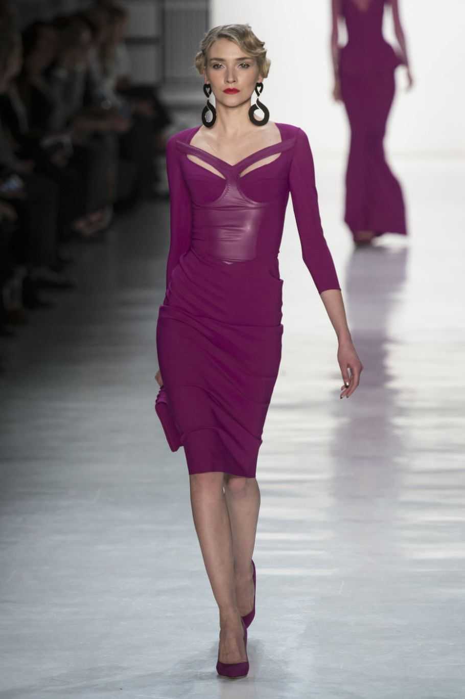 На показе мод можно было часто увидеть платья, выполненные в необычном цветовом сочетании – красный с розовым. Например, элегантное платье от Christian Siriano – до колен, на тонких лямках, повторяющее фигуру модели, выглядит очаровательно!