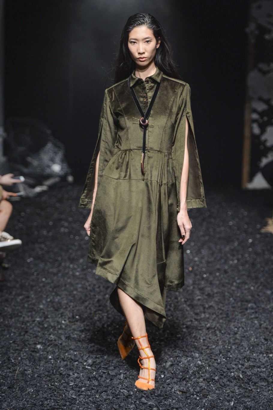 Чтобы усилить эффект, дизайнеры решили не останавливаться на одном асимметричном элементе и добавили еще несколько «изюминок». К примеру, шлейку на одно плечо, как у Angelo Marani или отворот на талии, как у Atlein – образы получились вполне уравновешенными.