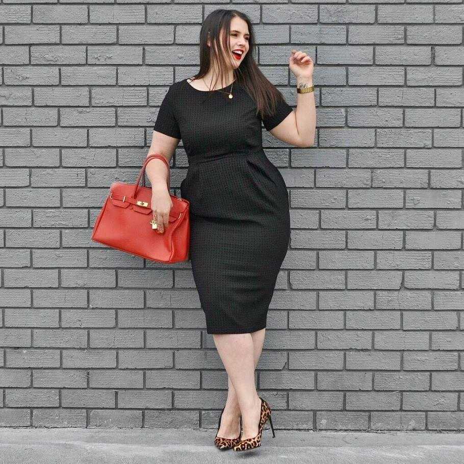 Стильные модели черных платьев для полных