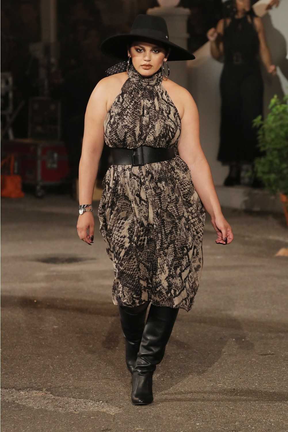 Кожаная ткань расширяет силуэт (за редким исключением). Это происходит из-за атласного отлива и фактуры. Чтобы кожаное платье подошло полной женщине, нужно разбавить ее другими видами материи.