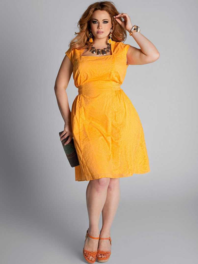 Мешковатые платья и широкие балахоны в далеком прошлом. На сегодняшний день нарядные платья для пышных женщин не ограничиваются несколькими моделями. Фасон подходящего наряда напрямую зависит от типажа женской фигуры. Универсальной длиной платья считается длина чуть ниже колен. Стильные и нарядные платья футляр прекрасно сядут на полных женщин с фигурой «песочные часы». Интересные платья А-силуэта удачно скроют недостатки ног фигуры «груша». Ну а для объемов «яблочко» модельеры советуют выбирать модели с явно выраженной талией, например, платье в нежном греческом стиле, трапециевидные наряды или дополнение в виде пояса