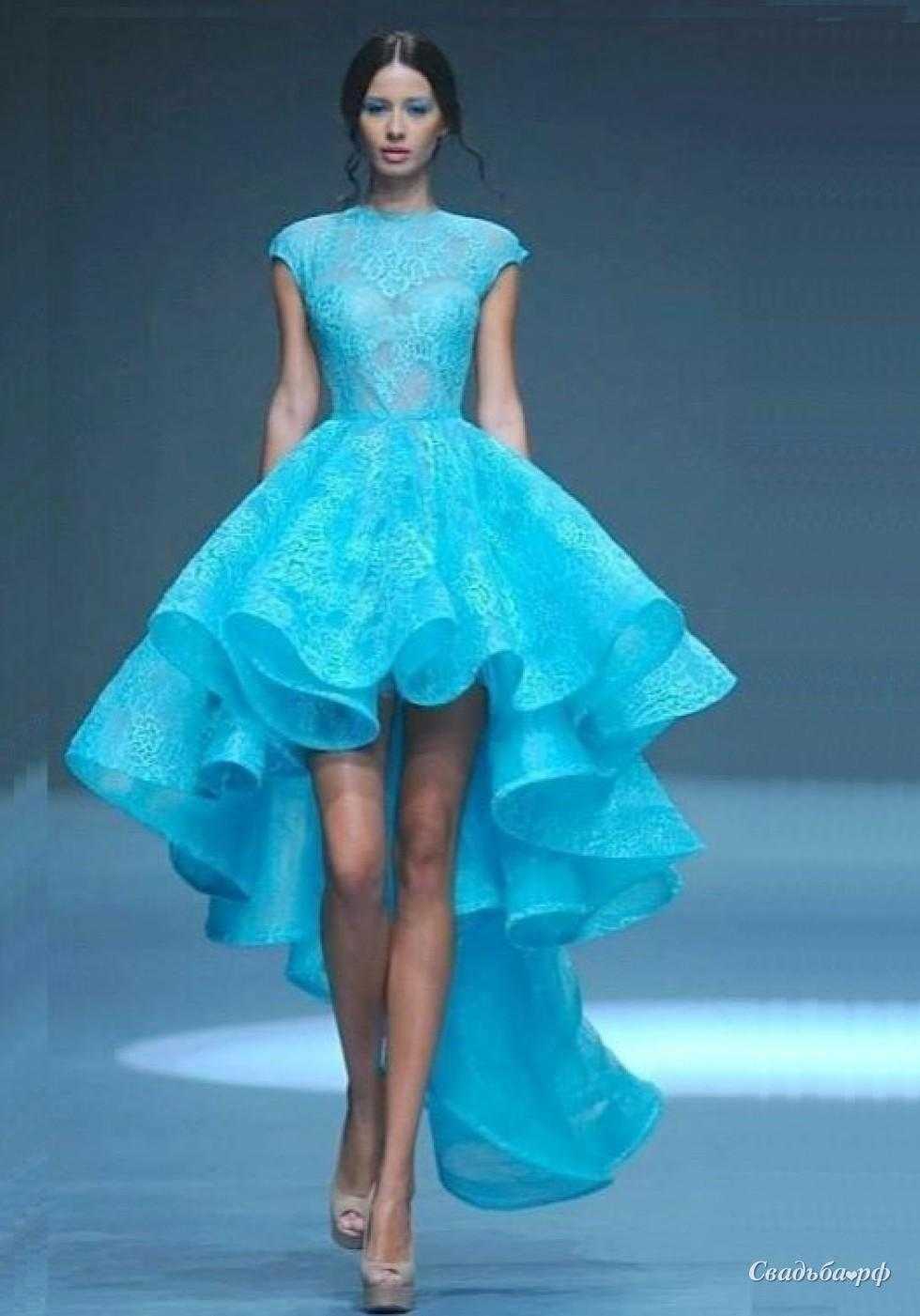 - Потрясающий эффект создает короткое платье с пышной юбкой с асимметричным подолом, она может быть двухслойной, сделанной из разных тканей. Асимметричные наряды могут быть украшены воланами и рюшами в нижней или в верхней части. Для девочки с неординарной внешностью подобная модель будет самым подходящим вариантом.