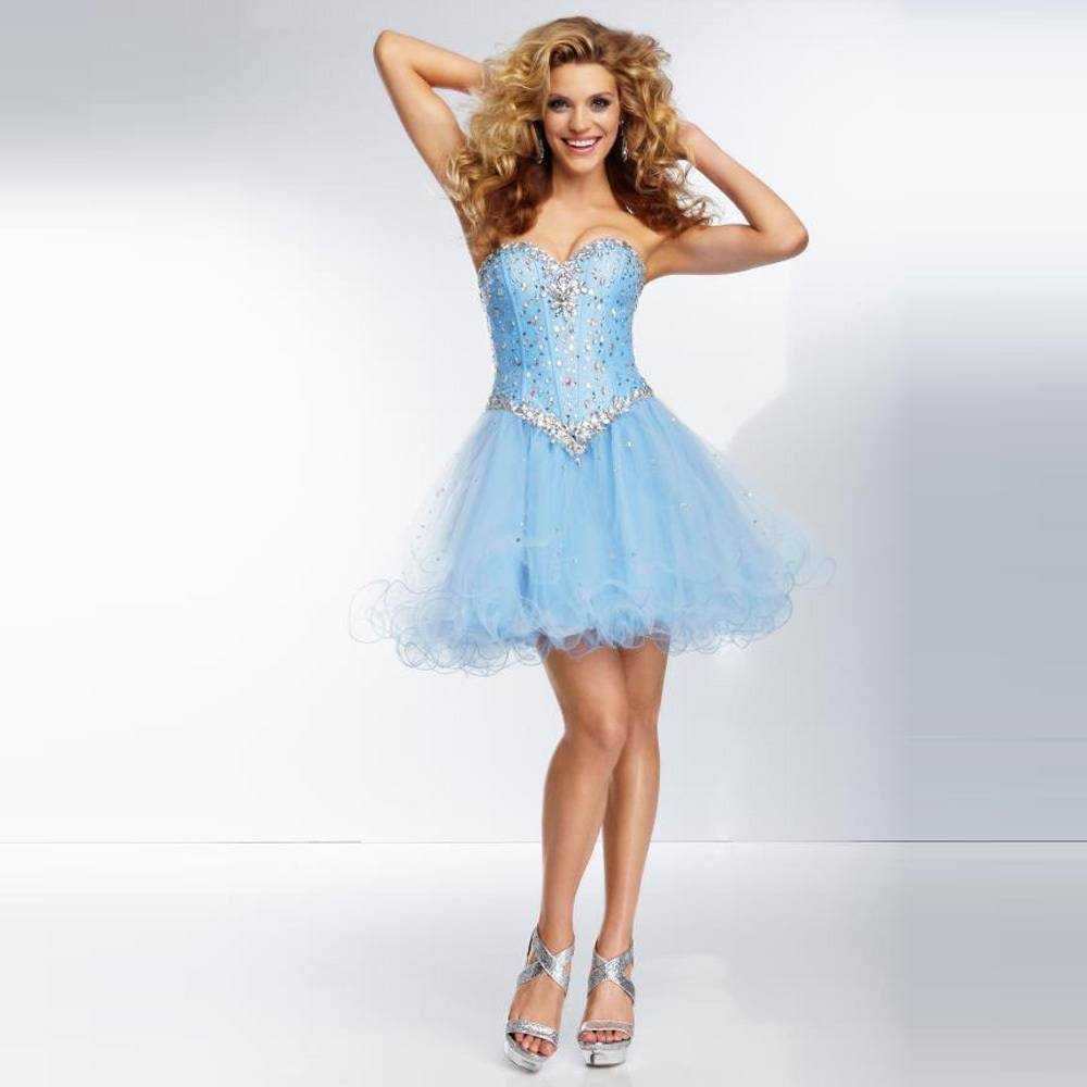 Трендовыми в 2018 году считаются короткие платья с корсетом и пышным низом. При этом можно пофантазировать над верхом, выбрав фасоны с ассиметричным верхом, открытой спинкой, полностью открытыми плечами и т.д.