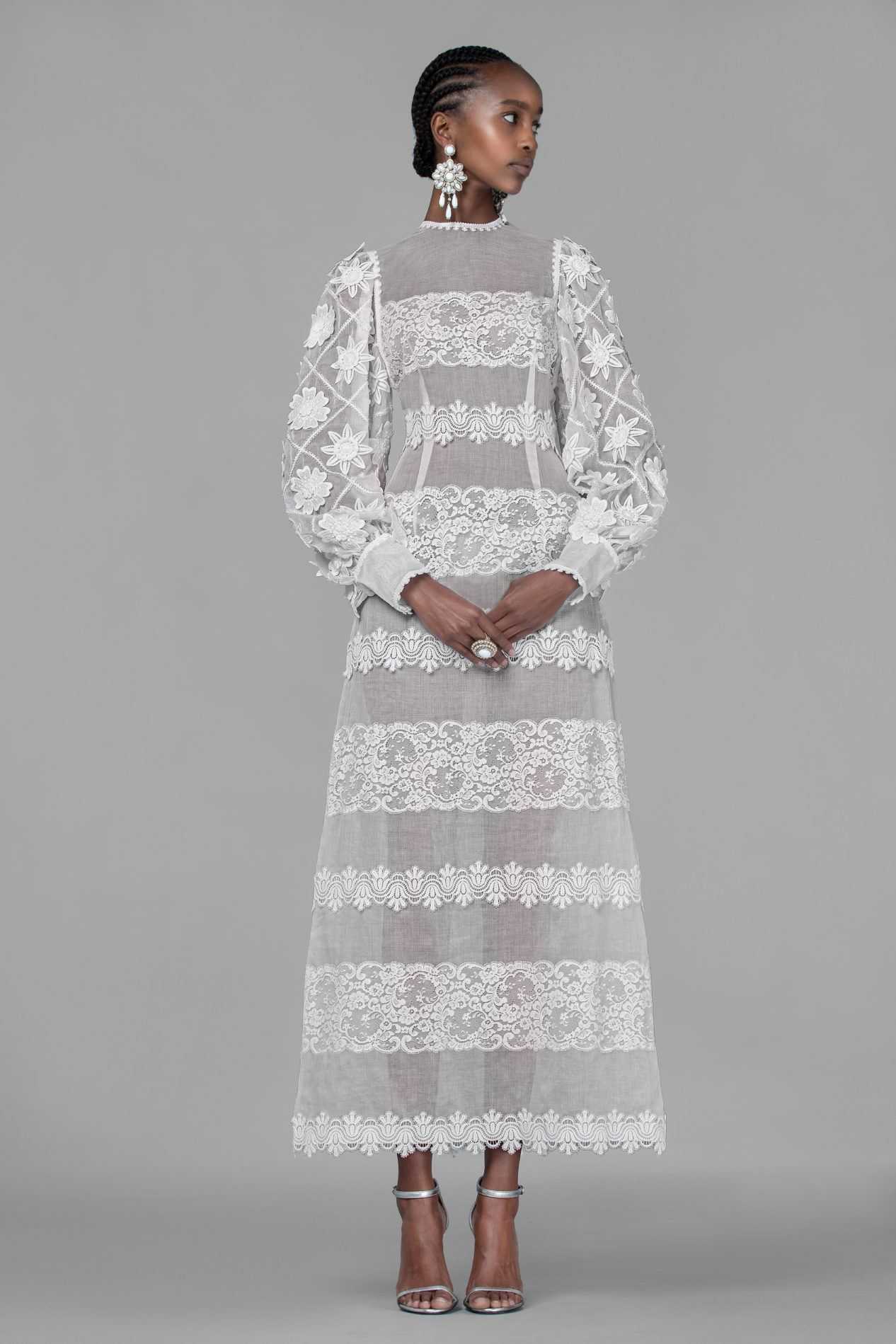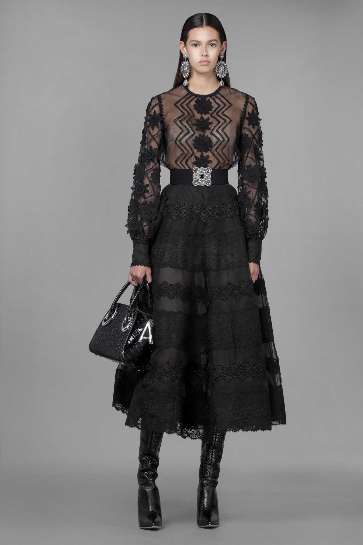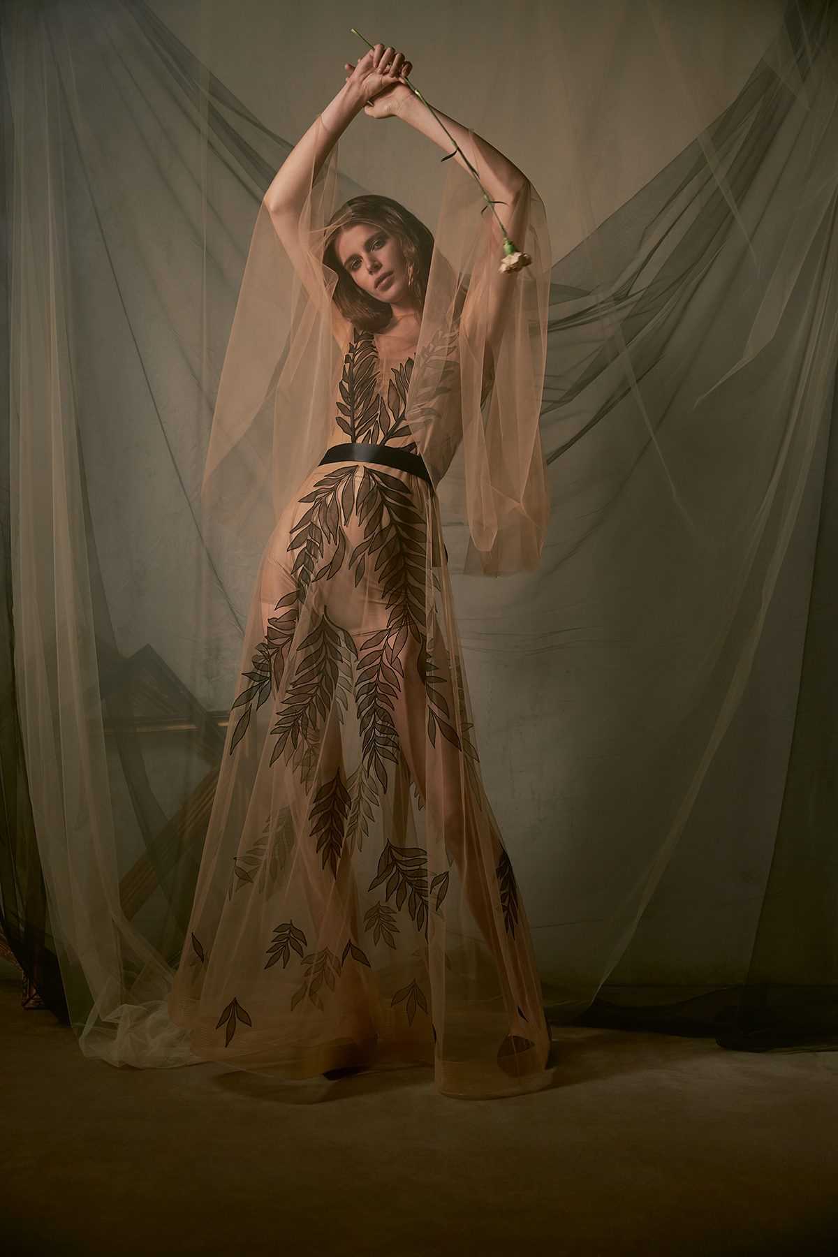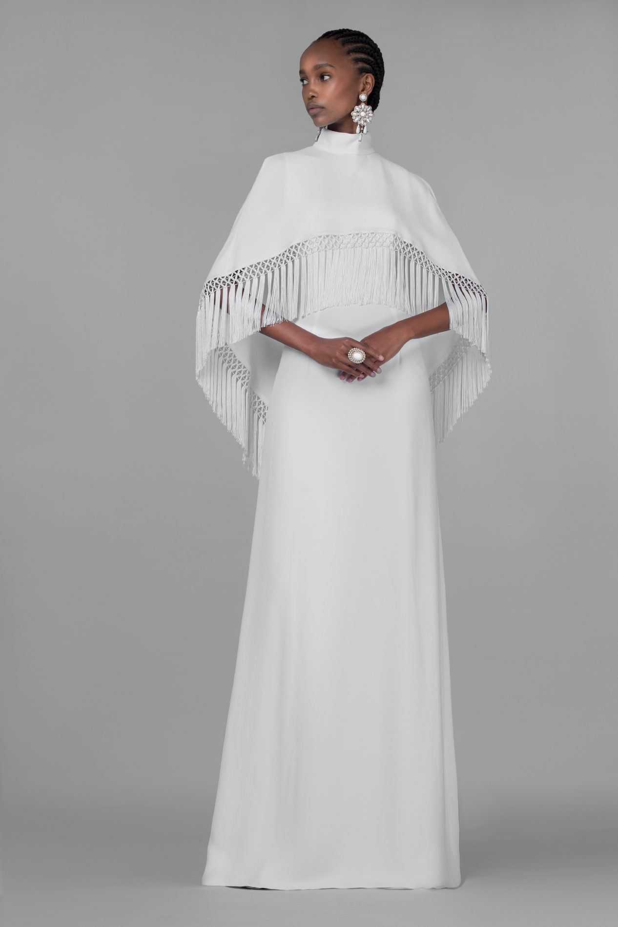 Oscar de La Renta предпочел струящиеся гофрированные модели макси длины, украшенные разрезанной американской проймой. Помимо всего прочего, он применил в отделке модных фасонов платьев 2019 на весну-лето бахрому всевозможной длины.