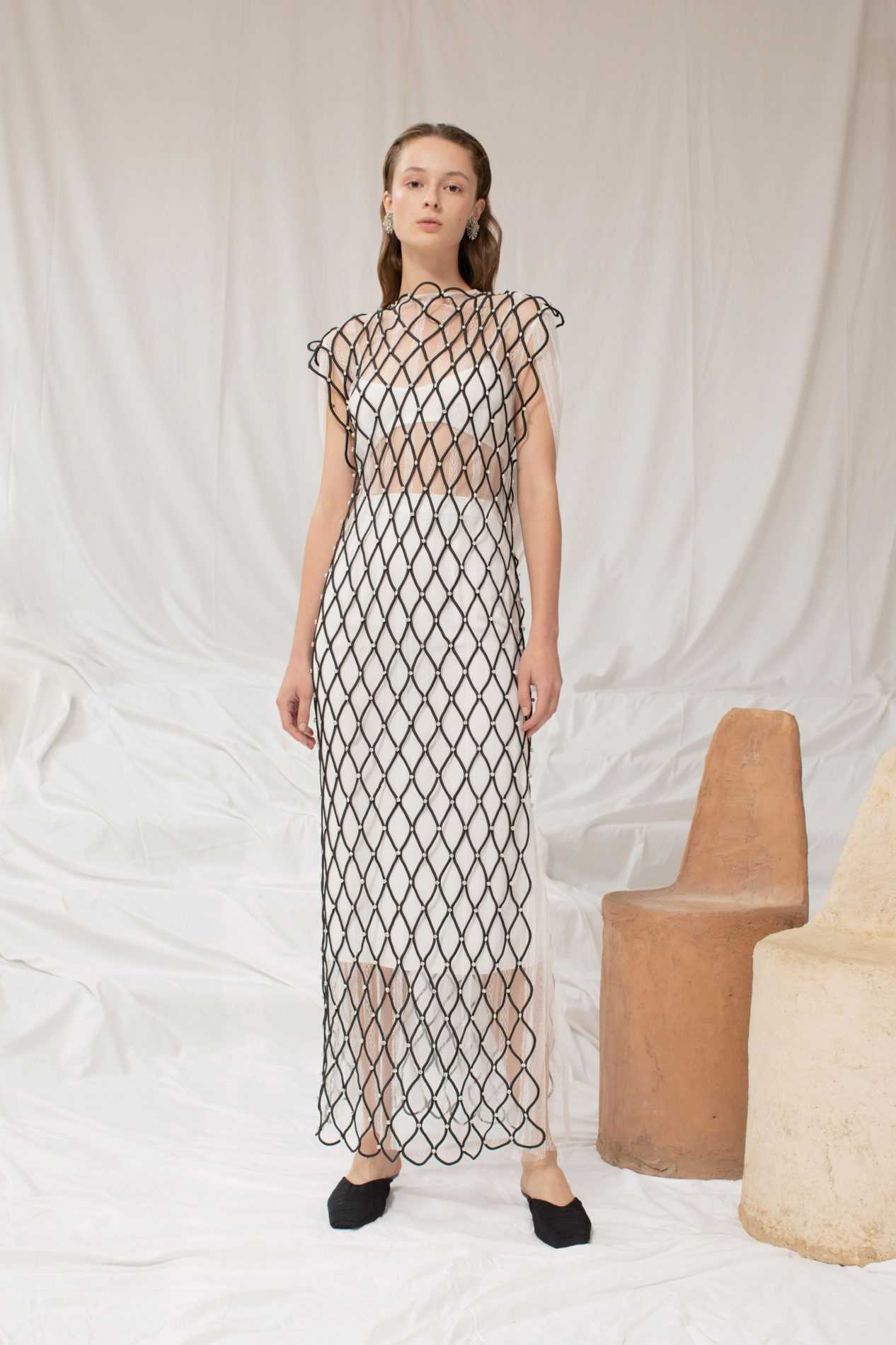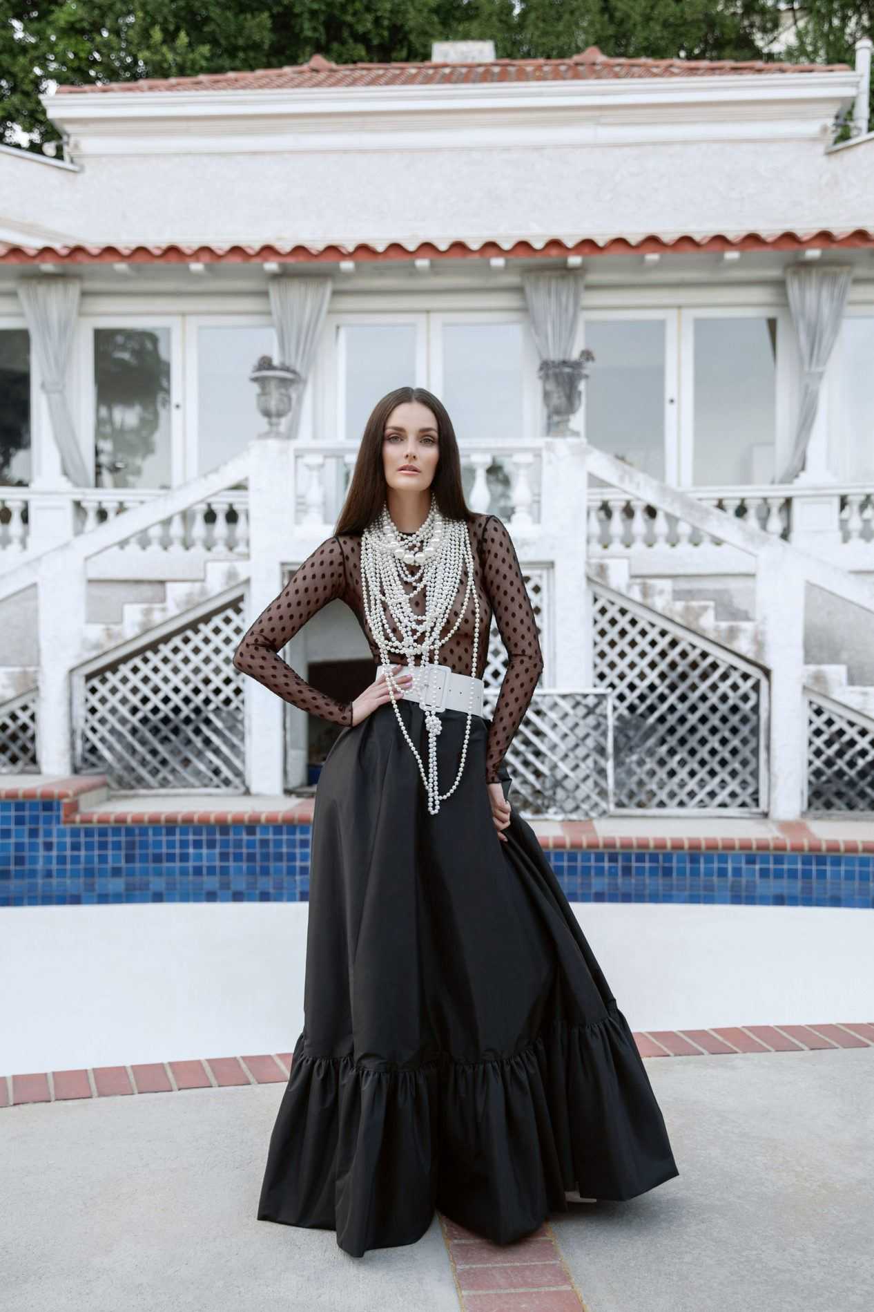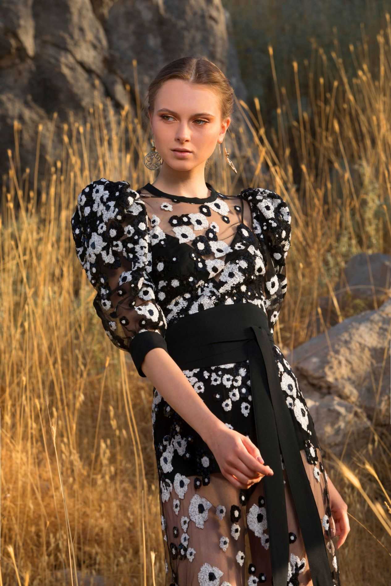 Длина миди подходит любой женщине независимо от возраста. Для тех, кто предпочитает более приглушенные оттенки, платье в черный горох из полупрозрачной ткани.