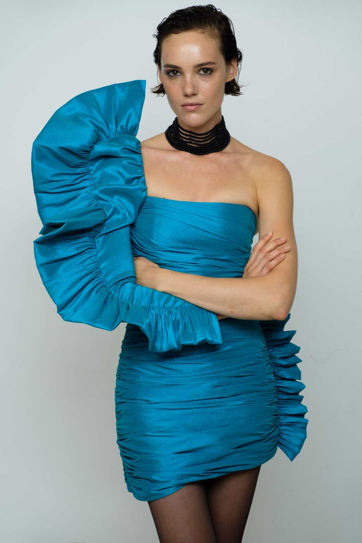 К примеру, Max Mara, украшает узенькими оборками, идущими вдоль по направлению рукава платья, выполненные из кожи или трикотажа.
