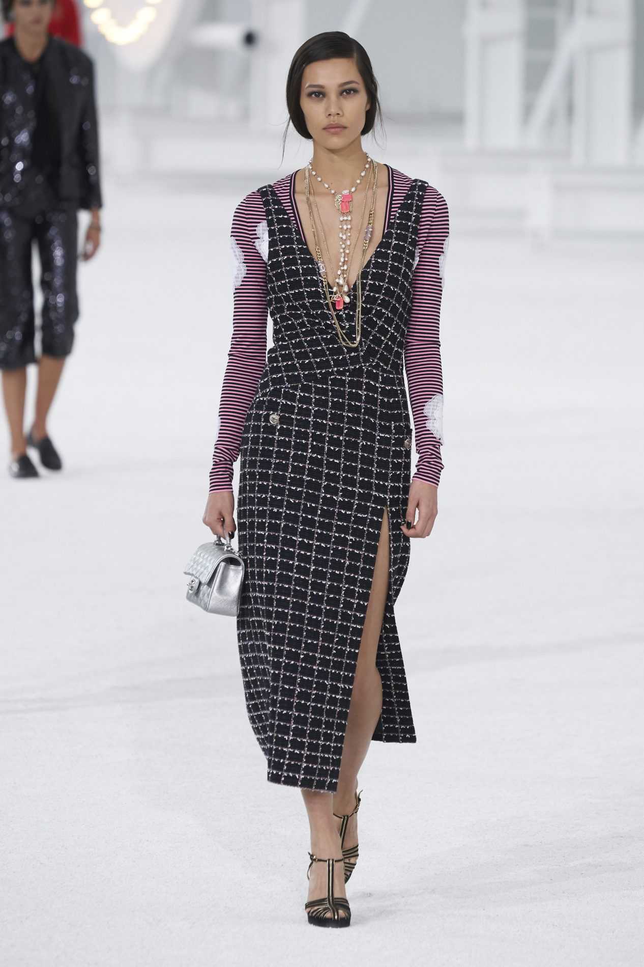 полоска – принт, точно так же переходящий из сезона в сезон. Стоит отметить, что продольное расположение этого принта визуально удлиняет силуэт и делает фигуру значительно стройнее;