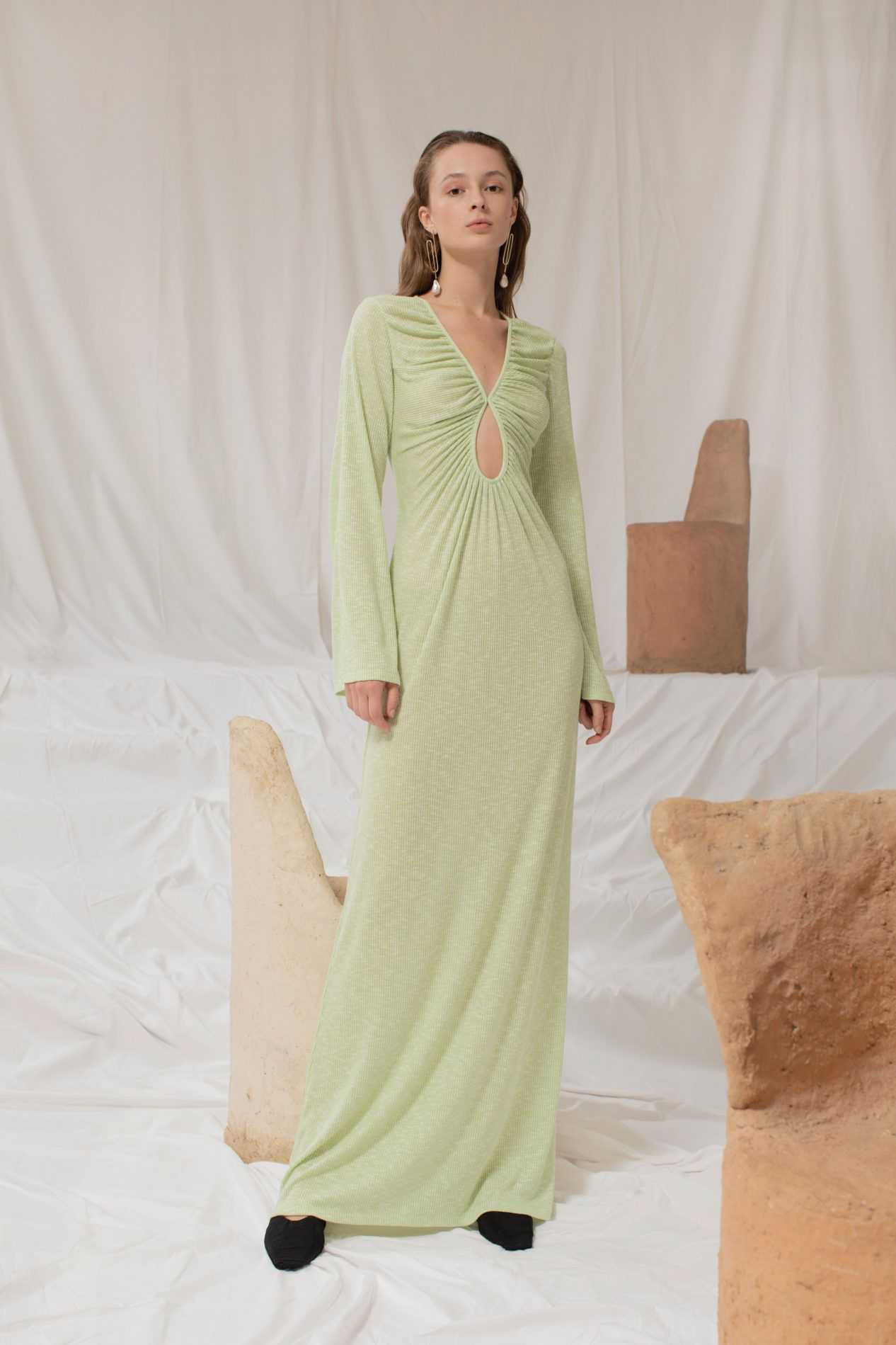 Ищете платье для корпоративной вечеринки перед новым – 2022 годом? Так что присмотритесь к этому варианту. Благородный изумрудный цвет, строгий приталенный крой, асимметричные рукава и пикантный разрез – в нем вы будете самой модной на вечеринке. Дополните свой наряд крупными серьгами, блестящим ожерельем и небольшой фактурной сумочкой. Из обуви подойдут классические лодочки, ботильоны с плотным носком или босоножки с эффектом металлик. Считается, что встретить Голубого Водного Тигра в зеленом цвете в новом году сулит успех в финансовых делах.
