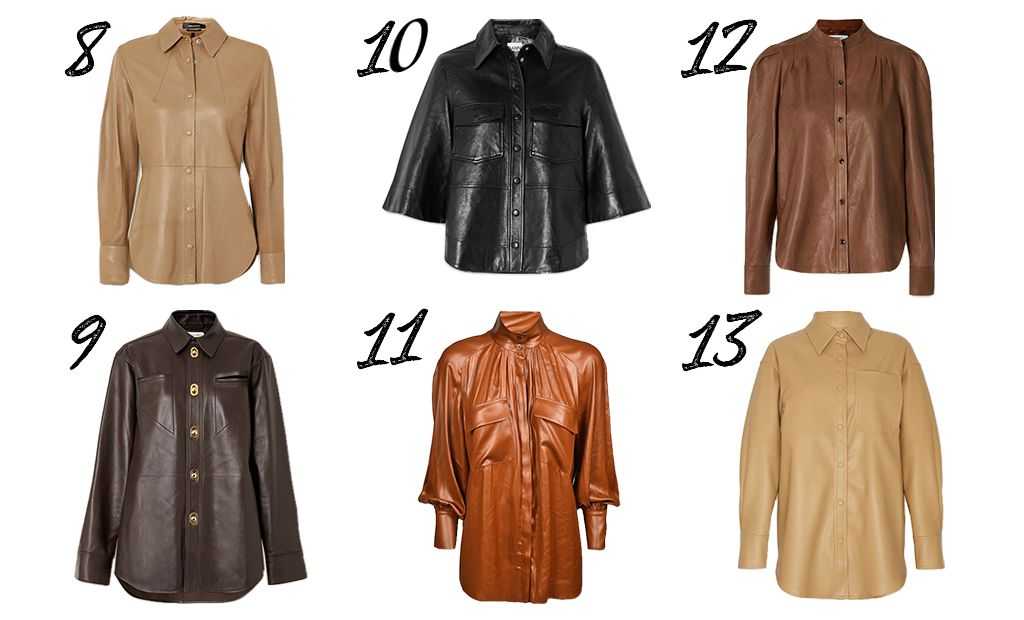 Классные кожаные рубашки можно найти в коллекциях многих брендов – от масс-маркета (в этом случае речь идет об экокоже) до люксовых: носите их в повседневной жизни с прямыми джинсами и кожаными брюками или миксуйте с юбкой с перьями или платьем с пайетками и смело отправляйтесь на вечеринку.