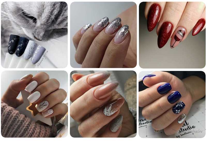 - Блестящий акцент на один или несколько пальцев из серебряных или золотых деталей – хорошая идея для новогоднего вечера.