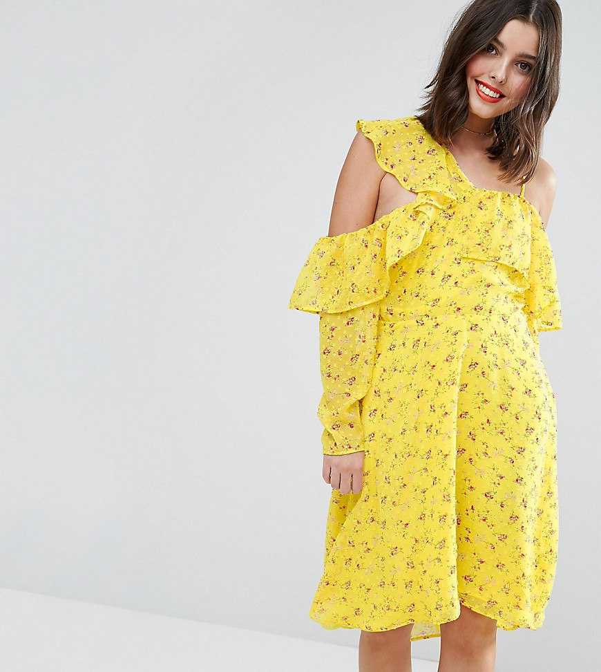Платья длиной до щиколотки обладают магическим шармом и грациозностью. Модели макси подойдут для вечеринок и праздничных мероприятий, но только на открытом воздухе. К примеру, можно выбрать такой наряды для свадьбы подруги. Высокий разрез или рукава-воланы сделают образ более легким и романтичным, а насыщенный желтый будет великолепно смотреться под лучами солнца.