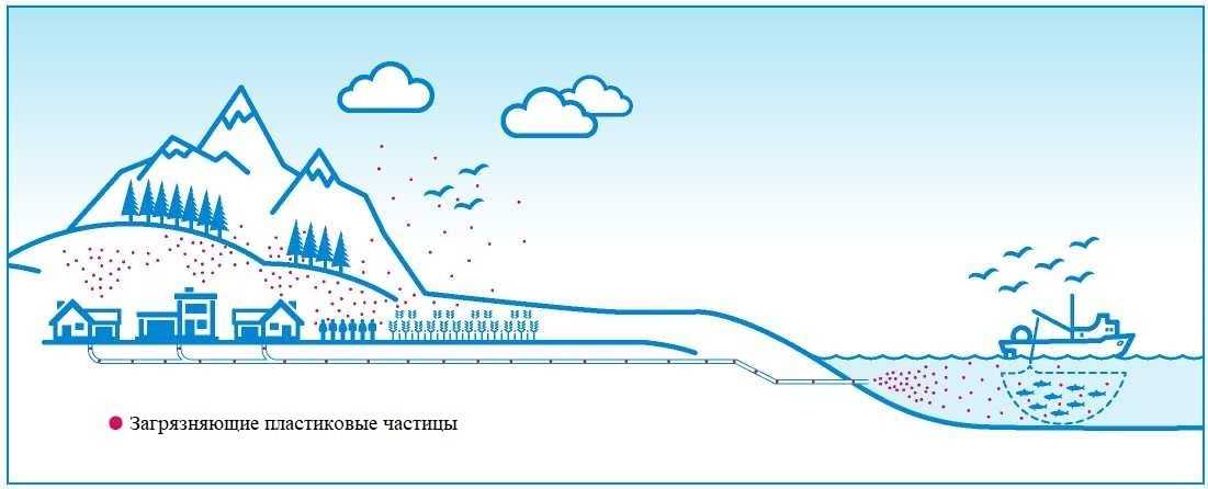 Мы используем косметику с микропластиком, умываемся, частицы попадают через трубы в озера, моря, океаны… Микропластик, даже имея наноразмеры, не разлагается в воде! И он становится пищей для морских организмов. Позже мы едим эту рыбу, креветки, крабов и микропластик попадает в наш организм! Также и в воде, которую мы пьем, содержится микропластик, так как очистительные системы не могут задержать наночастицы.