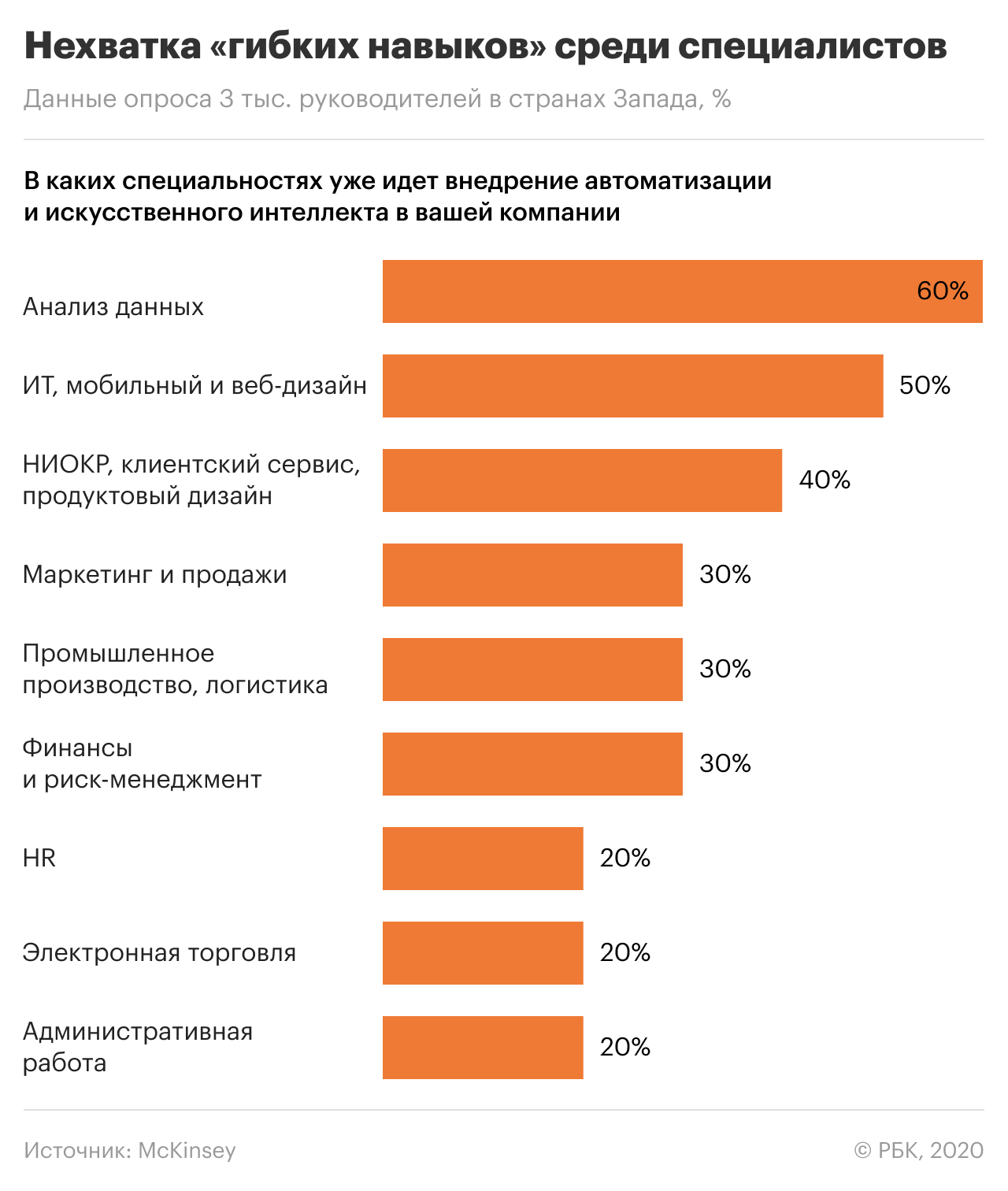 На западе рекрутеры борются с нехваткой гибких навыков, устанавливая равные пропорции между наймом подходящих кандидатов и переквалификацией действующих сотрудников. Дело в том, что такая гибридная экспертиза — редкость, и бизнесу трудно найти готовых специалистов на рынке труда, их приходится переманивать из других компаний. Поиск может растянуться на долгий период, а текущие задачи бизнеса нужно закрывать уже сейчас. Поэтому в ход идут корпоративные программы обучения.