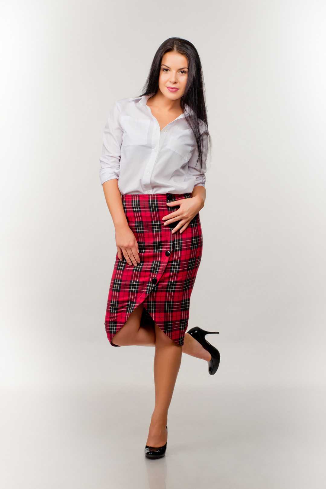 Красная юбка в клетку – вариант скорее для повседневности, чем для офиса со строгим дресс-кодом. Клетки на таком фоне могут быть всевозможных оттенков, создавая или контраст, или гармоничное сочетание из единой цветовой гаммы.