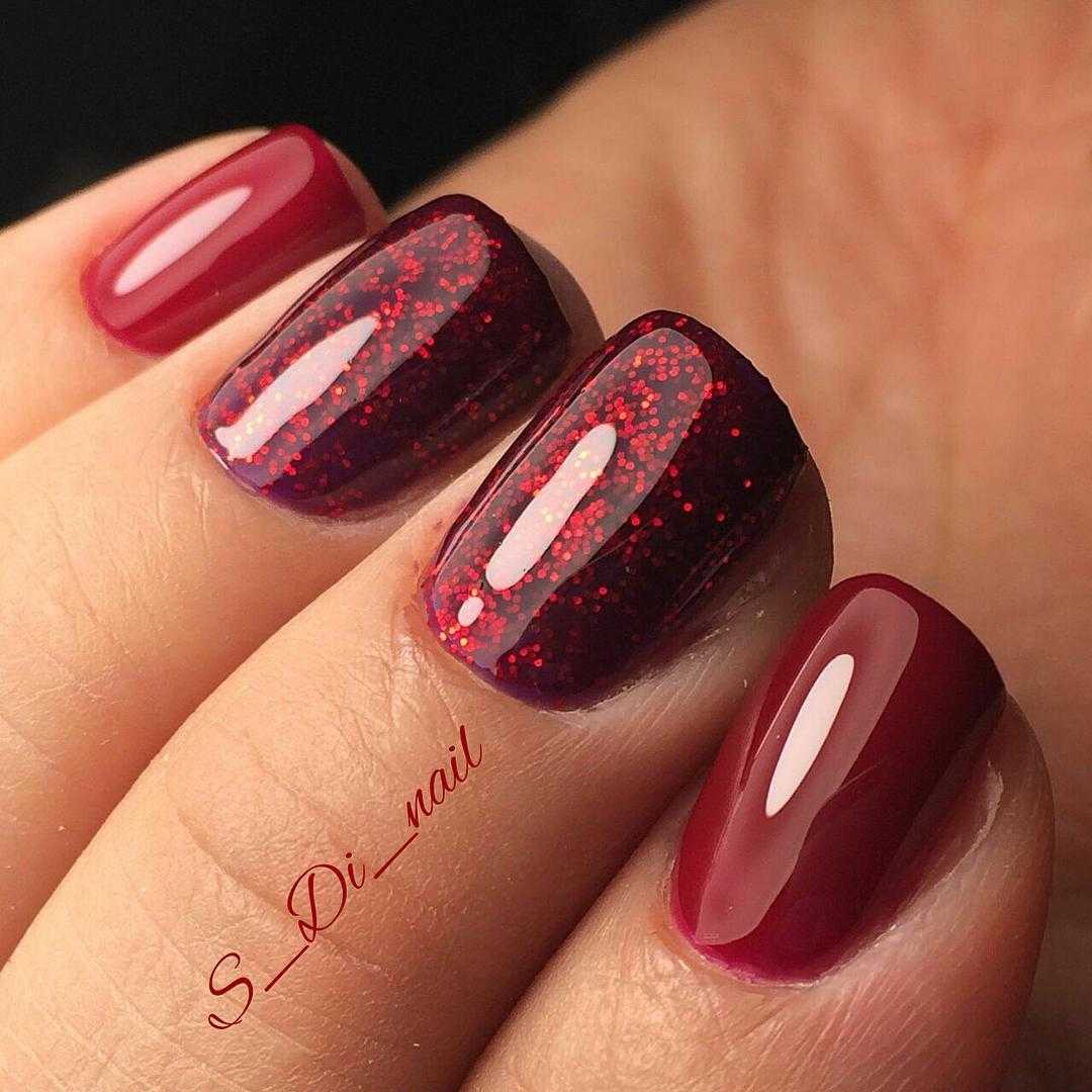 Модный нынче цвет спелой вишни или пьянящего вина, именуемый марсала — зимний вариант контрастного маникюра для уверенных в себе красавиц.